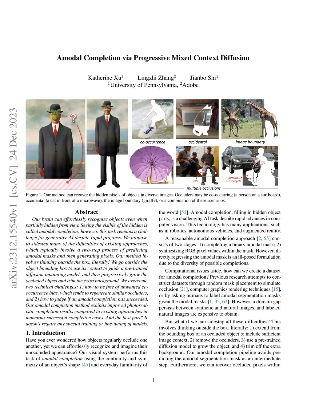 Our brain can effortlessly recognize objects even when partially hidden from view. Seeing the visible of the hidden is called amodal completion; however, this task remains a challenge for generative AI despite rapid progress. We propose to sidestep many of the difficulties of existing approaches, which typically involve a two-step process of predicting amodal masks and then generating pixels. Our method involves thinking outside the box, literally! We go outside the object bounding box to use its context to guide a pre-trained diffusion inpainting model, and then progressively grow the occluded object and trim the extra background. We overcome two technical challenges: 1) how to be free of unwanted co-occurrence bias, which tends to regenerate similar occluders, and 2) how to judge if an amodal completion has succeeded. Our amodal completion method exhibits improved photorealistic completion results compared to existing approaches in numerous successful completion cases. And the best part? It doesn't require any special training or fine-tuning of models.