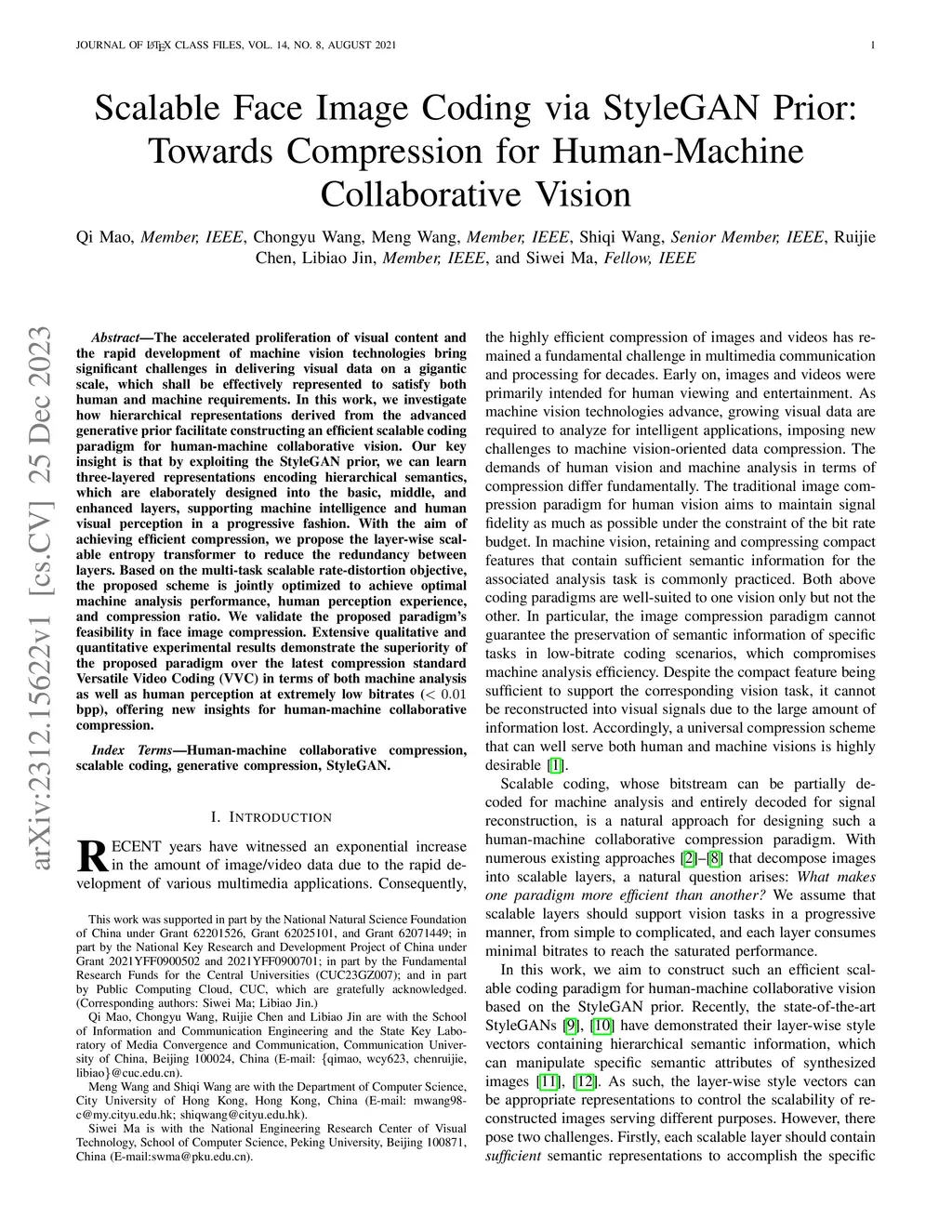Scalable Face Image Coding via StyleGAN Prior: Towards Compression for