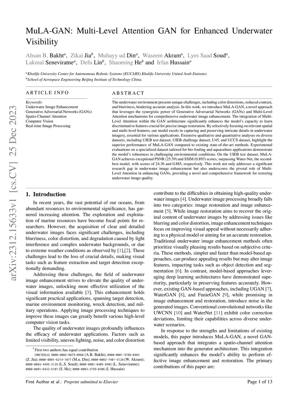MuLA-GAN: Multi-Level Attention GAN for Enhanced Underwater Visibility