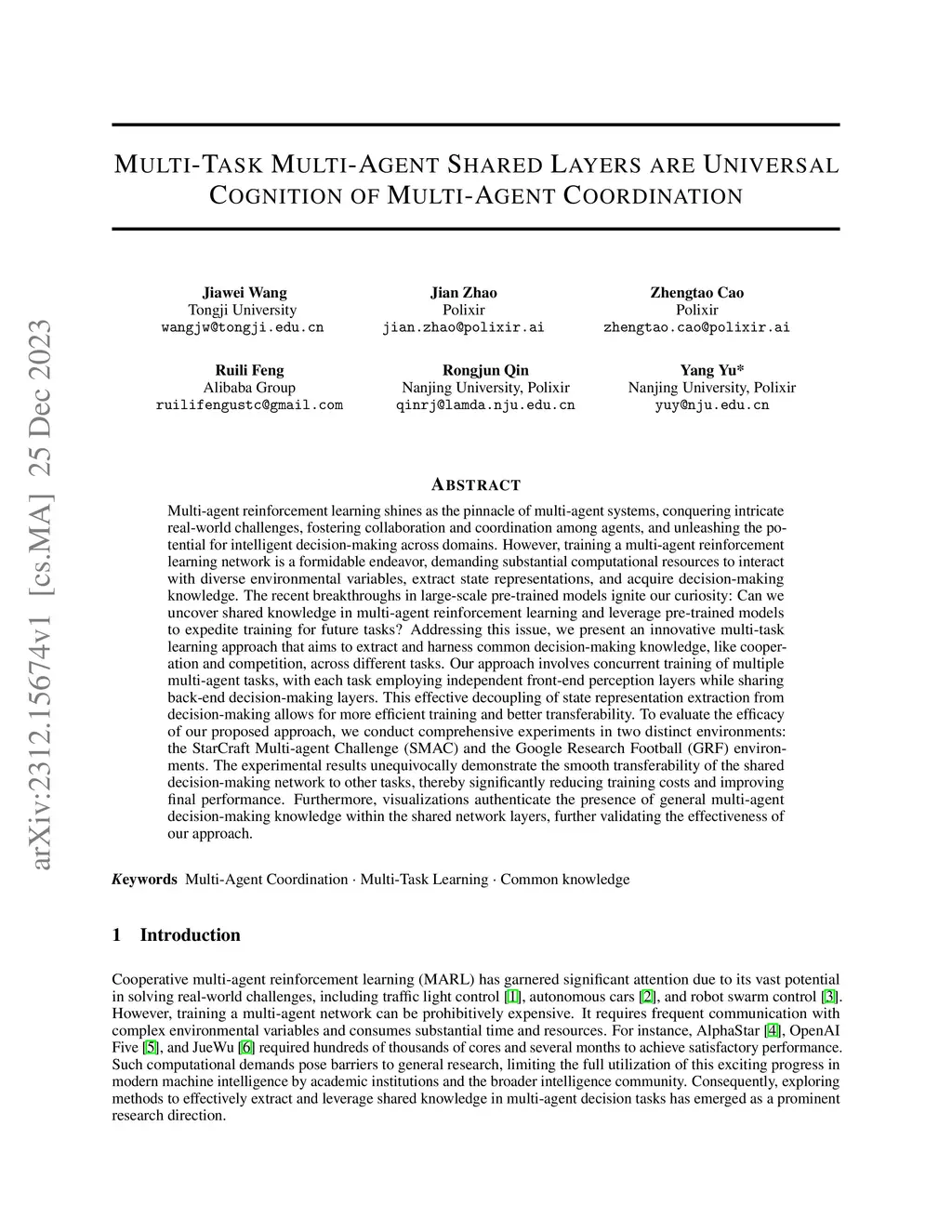 Multi-Task Multi-Agent Shared Layers are Universal Cognition of