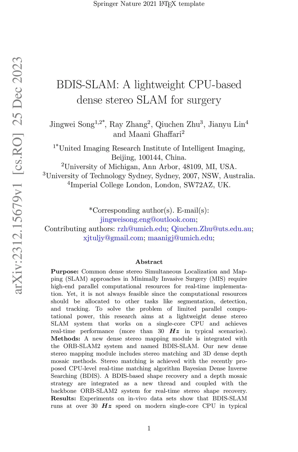BDIS-SLAM: A lightweight CPU-based dense stereo SLAM for surgery