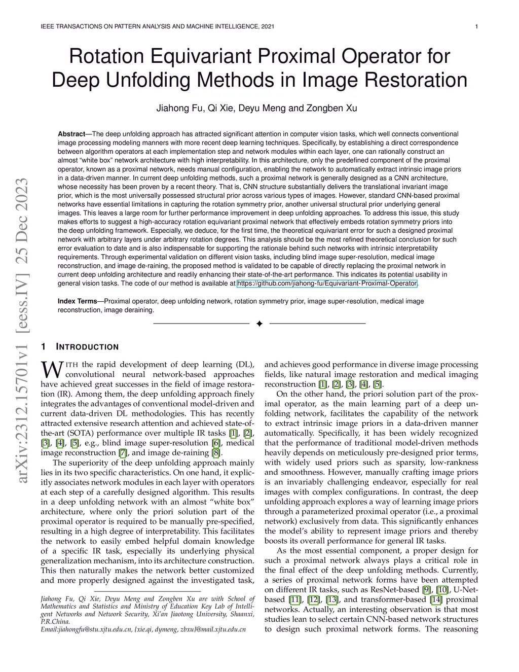 The deep unfolding approach has attracted significant attention in computer vision tasks, which well connects conventional image processing modeling manners with more recent deep learning techniques. Specifically, by establishing a direct correspondence between algorithm operators at each implementation step and network modules within each layer, one can rationally construct an almost ``white box'' network architecture with high interpretability. In this architecture, only the predefined component of the proximal operator, known as a proximal network, needs manual configuration, enabling the network to automatically extract intrinsic image priors in a data-driven manner. In current deep unfolding methods, such a proximal network is generally designed as a CNN architecture, whose necessity has been proven by a recent theory. That is, CNN structure substantially delivers the translational invariant image prior, which is the most universally possessed structural prior across various types of images. However, standard CNN-based proximal networks have essential limitations in capturing the rotation symmetry prior, another universal structural prior underlying general images. This leaves a large room for further performance improvement in deep unfolding approaches. To address this issue, this study makes efforts to suggest a high-accuracy rotation equivariant proximal network that effectively embeds rotation symmetry priors into the deep unfolding framework. Especially, we deduce, for the first time, the theoretical equivariant error for such a designed proximal network with arbitrary layers under arbitrary rotation degrees. This analysis should be the most refined theoretical conclusion for such error evaluation to date and is also indispensable for supporting the rationale behind such networks with intrinsic interpretability requirements.