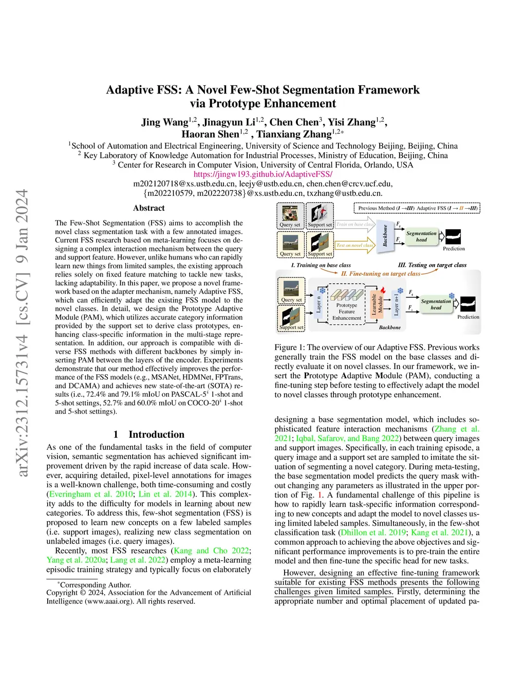 Adaptive FSS: A Novel Few-Shot Segmentation Framework via Prototype