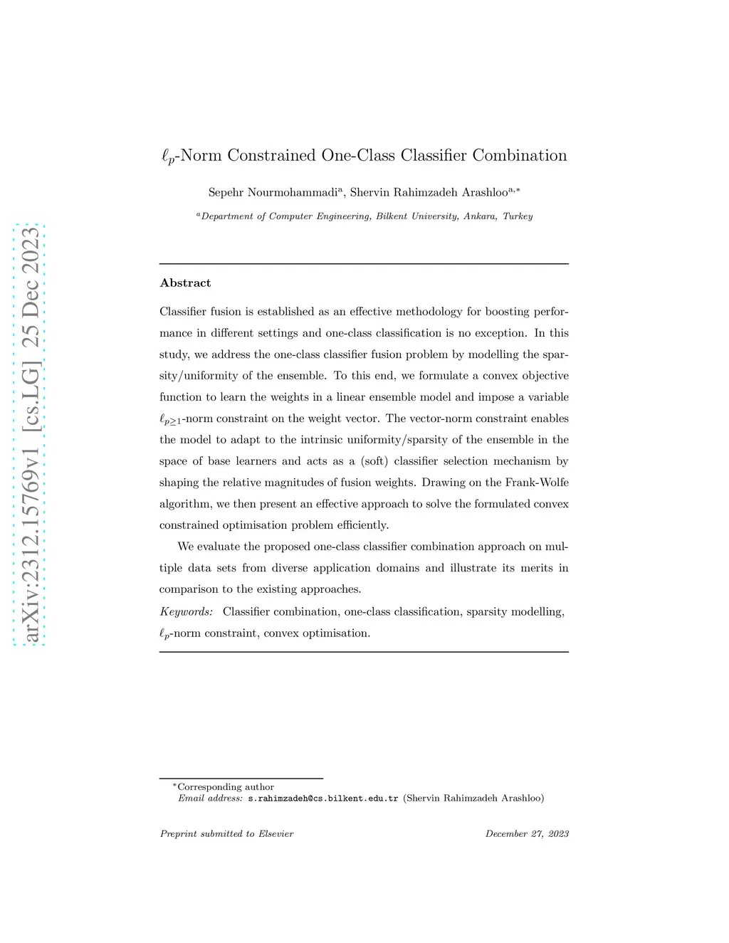 Lp-Norm Constrained One-Class Classifier Combination