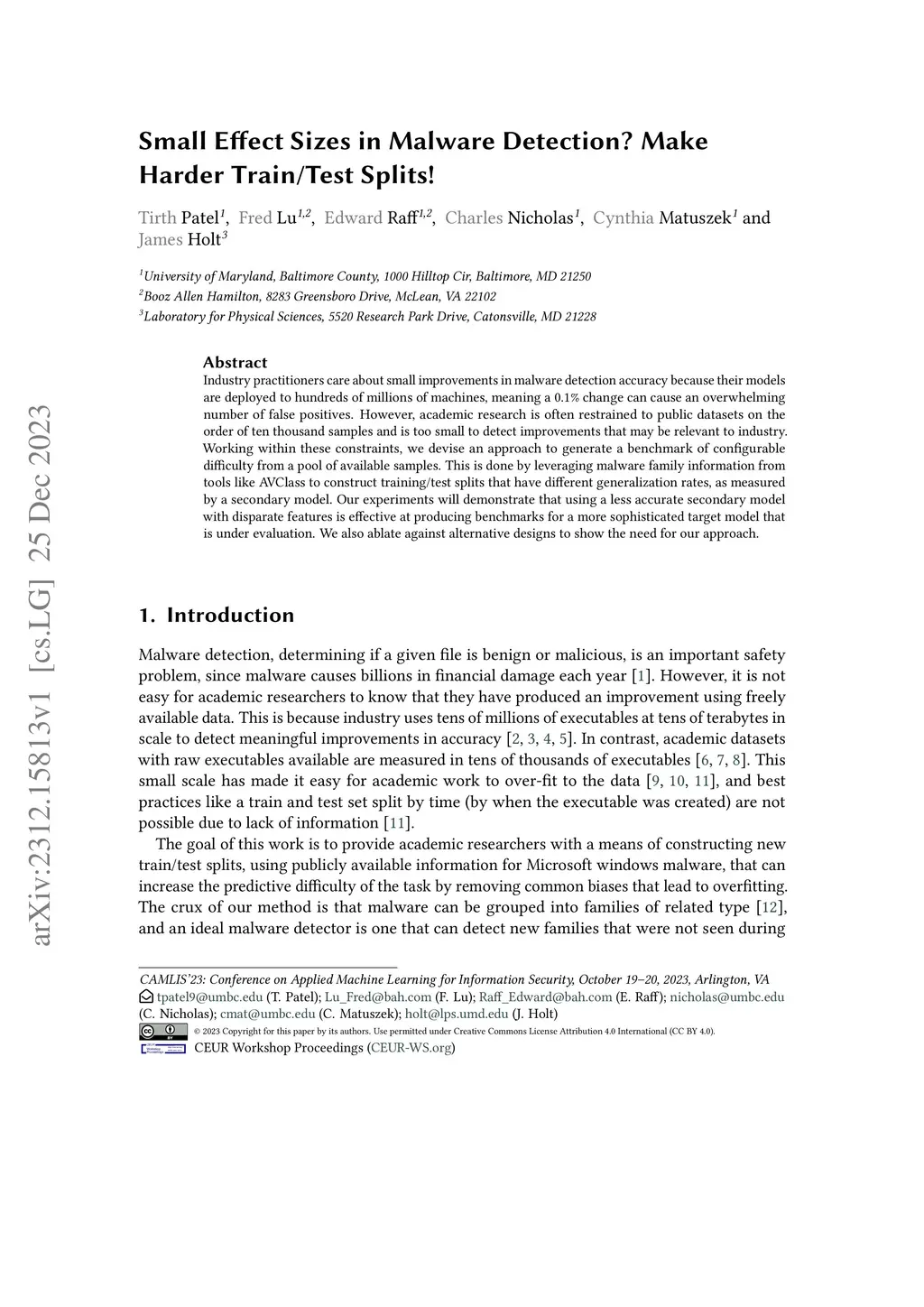 Small Effect Sizes in Malware Detection? Make Harder Train/Test Splits!