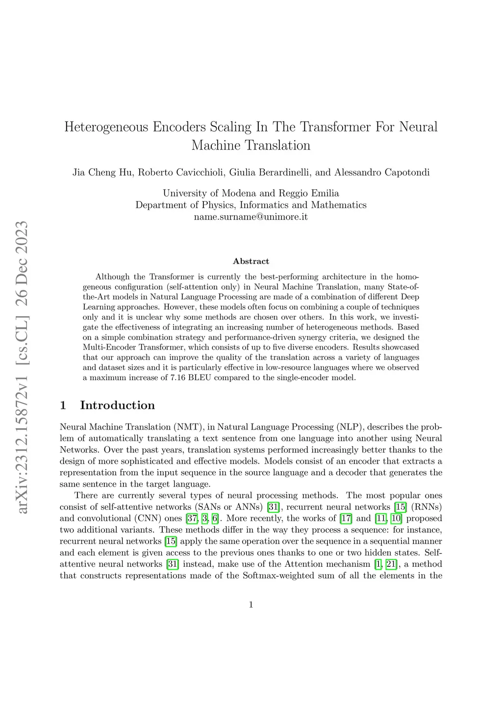 Heterogeneous Encoders Scaling In The Transformer For Neural Machine