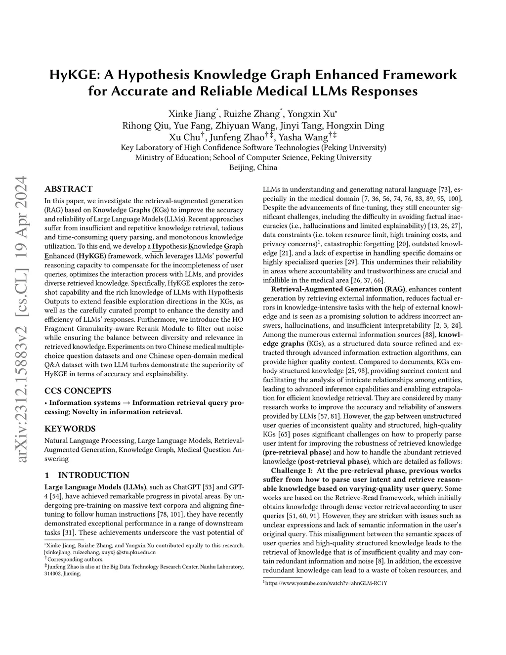 HyKGE: A Hypothesis Knowledge Graph Enhanced Framework for Accurate and