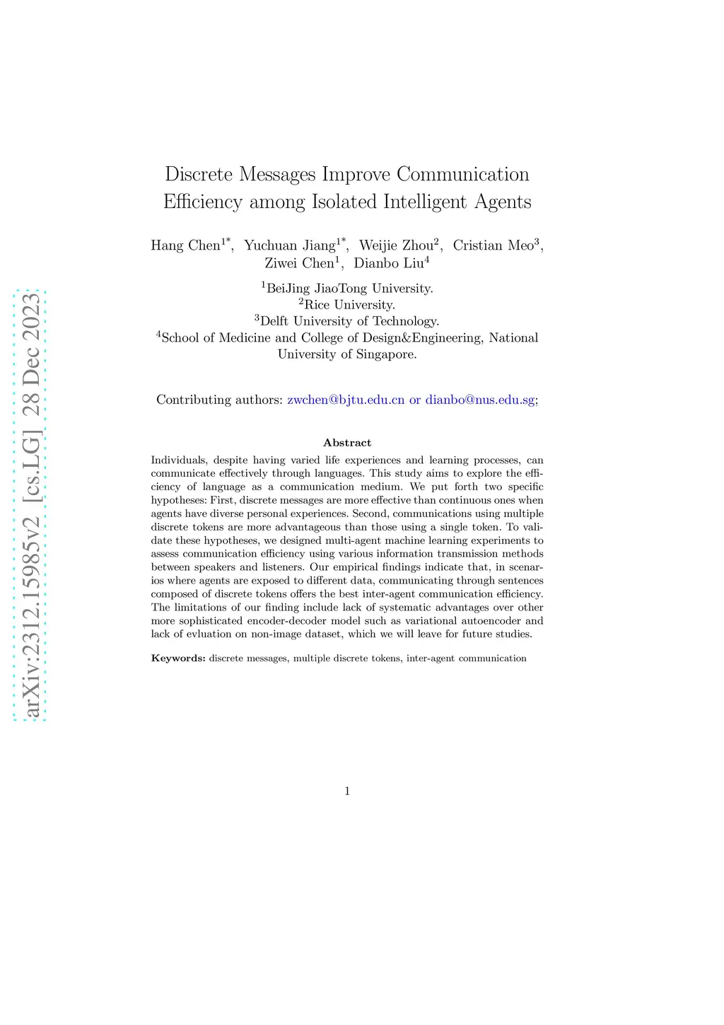 Discrete Messages Improve Communication Efficiency among Isolated Intelligent Agents