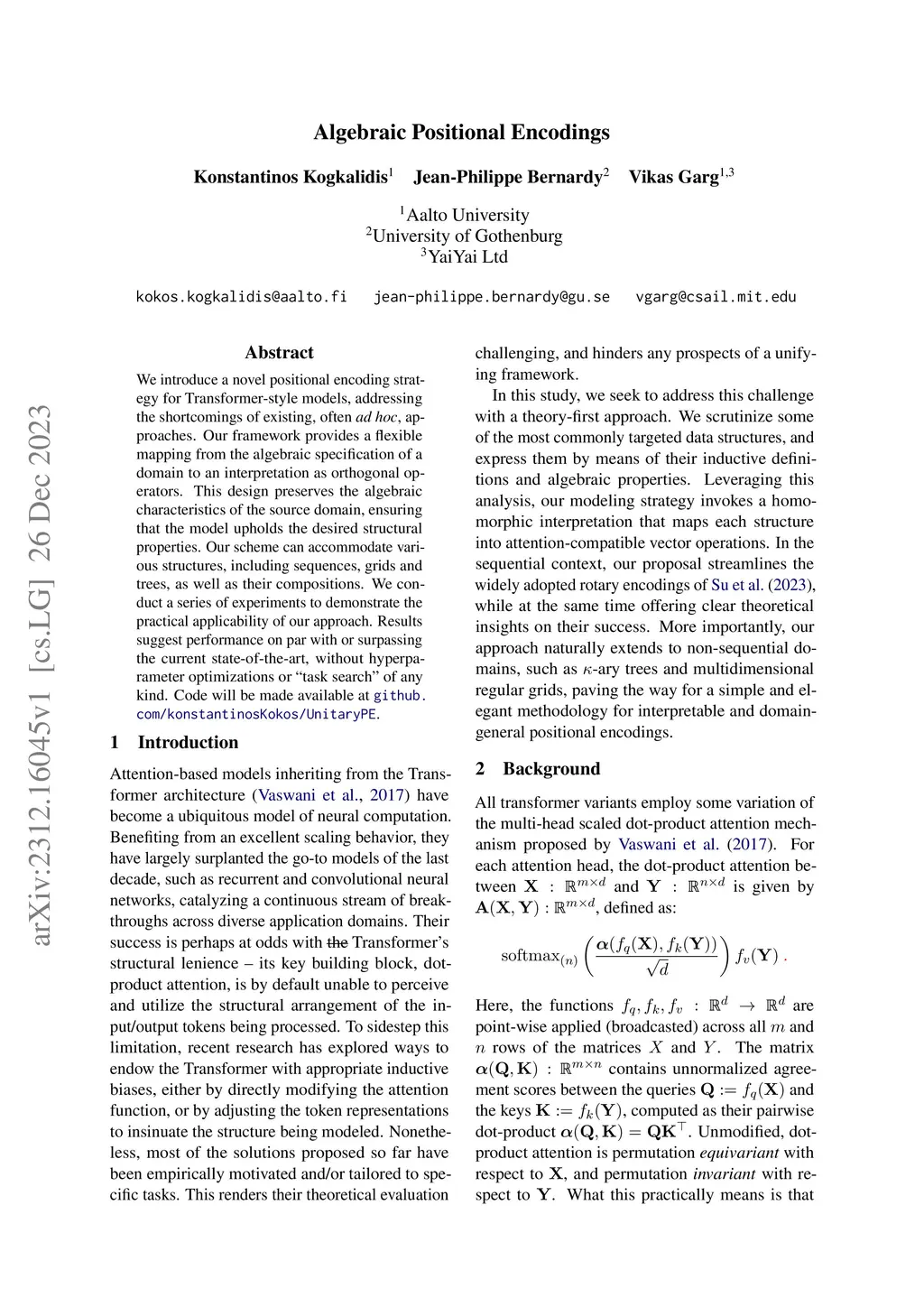 Algebraic Positional Encodings