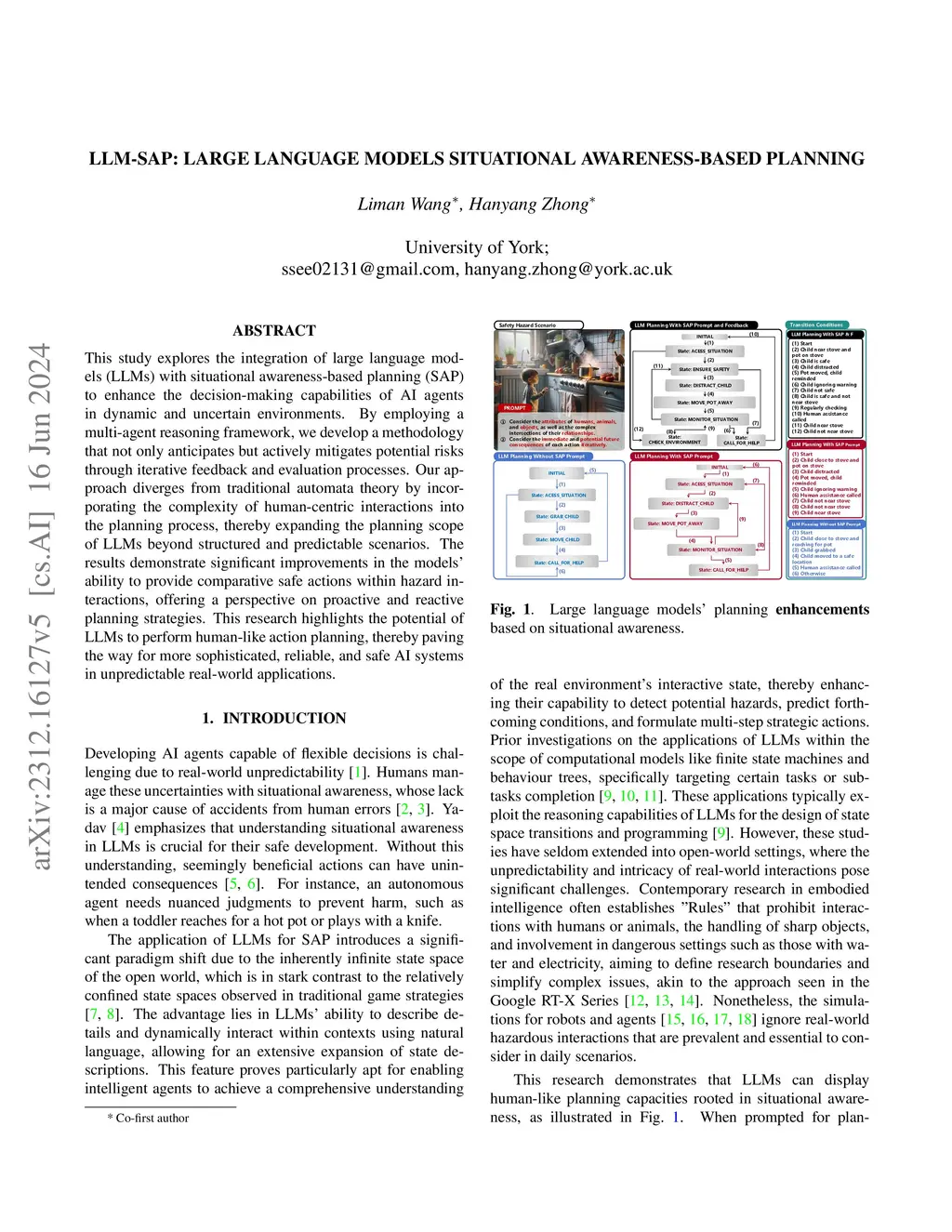 This study explores integrating large language models (LLMs) with situational awareness-based planning (SAP) to enhance the decision-making capabilities of AI agents in dynamic and uncertain environments. We employ a multi-agent reasoning framework to develop a methodology that anticipates and actively mitigates potential risks through iterative feedback and evaluation processes. Our approach diverges from traditional automata theory by incorporating the complexity of human-centric interactions into the planning process, thereby expanding the planning scope of LLMs beyond structured and predictable scenarios. The results demonstrate significant improvements in the model's ability to provide comparative safe actions within hazard interactions, offering a perspective on proactive and reactive planning strategies. This research highlights the potential of LLMs to perform human-like action planning, thereby paving the way for more sophisticated, reliable, and safe AI systems in unpredictable real-world applications.
