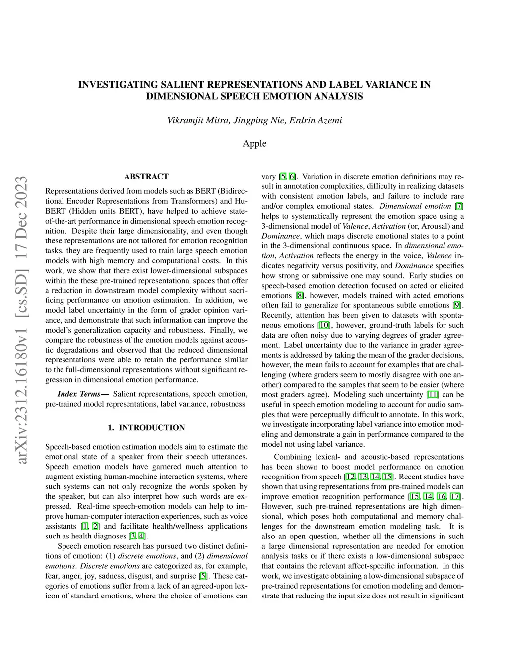 Investigating salient representations and label Variance in Dimensional