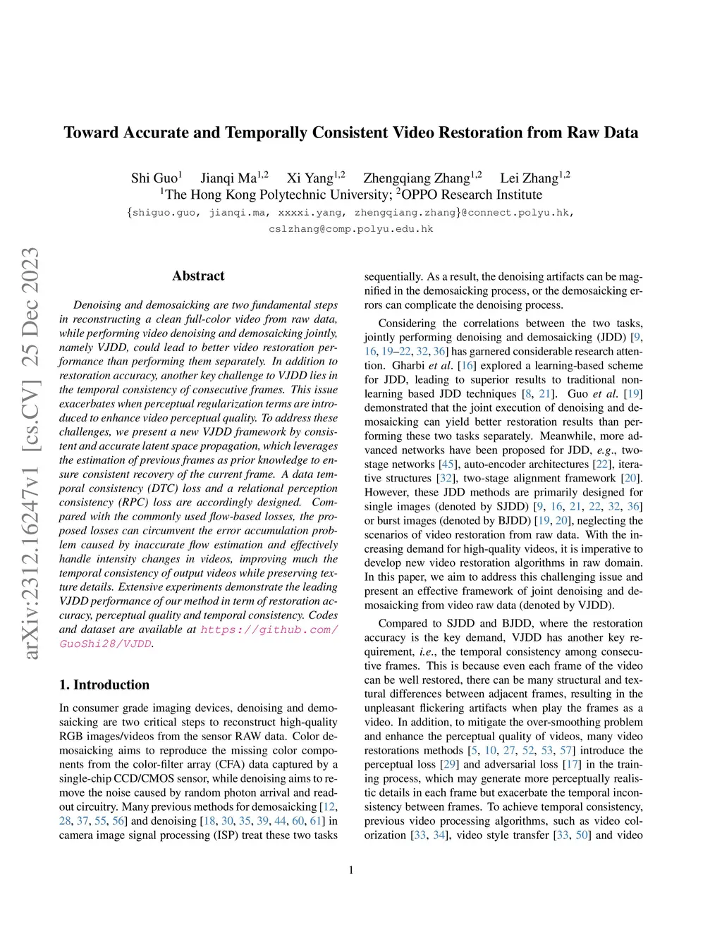 Denoising and demosaicking are two fundamental steps in reconstructing a clean full-color video from raw data, while performing video denoising and demosaicking jointly, namely VJDD, could lead to better video restoration performance than performing them separately. In addition to restoration accuracy, another key challenge to VJDD lies in the temporal consistency of consecutive frames. This issue exacerbates when perceptual regularization terms are introduced to enhance video perceptual quality. To address these challenges, we present a new VJDD framework by consistent and accurate latent space propagation, which leverages the estimation of previous frames as prior knowledge to ensure consistent recovery of the current frame. A data temporal consistency (DTC) loss and a relational perception consistency (RPC) loss are accordingly designed. Compared with the commonly used flow-based losses, the proposed losses can circumvent the error accumulation problem caused by inaccurate flow estimation and effectively handle intensity changes in videos, improving much the temporal consistency of output videos while preserving texture details. Extensive experiments demonstrate the leading VJDD performance of our method in term of restoration accuracy, perceptual quality and temporal consistency. Codes and dataset are available at \url{https://github.com/GuoShi28/VJDD}.