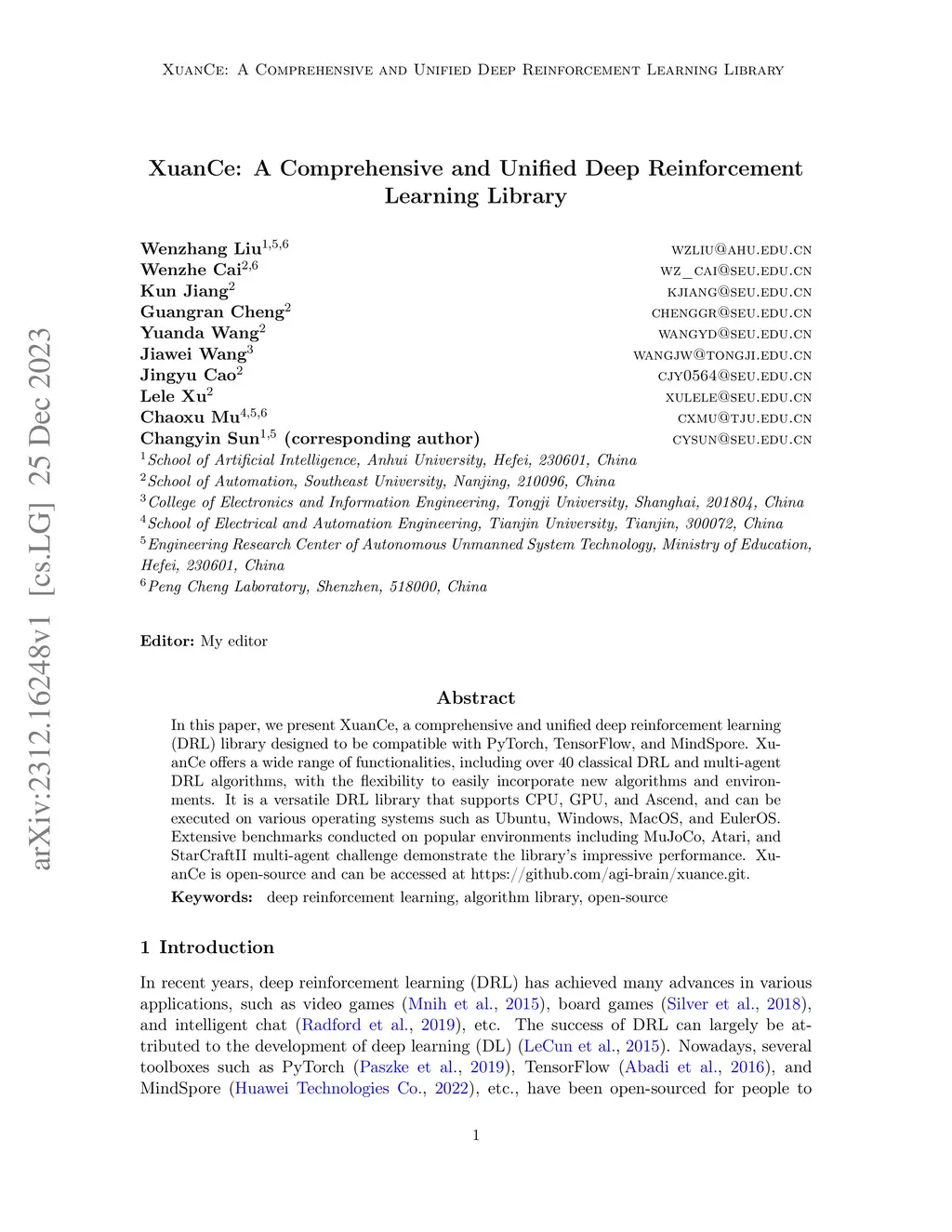 XuanCe: A Comprehensive and Unified Deep Reinforcement Learning Library