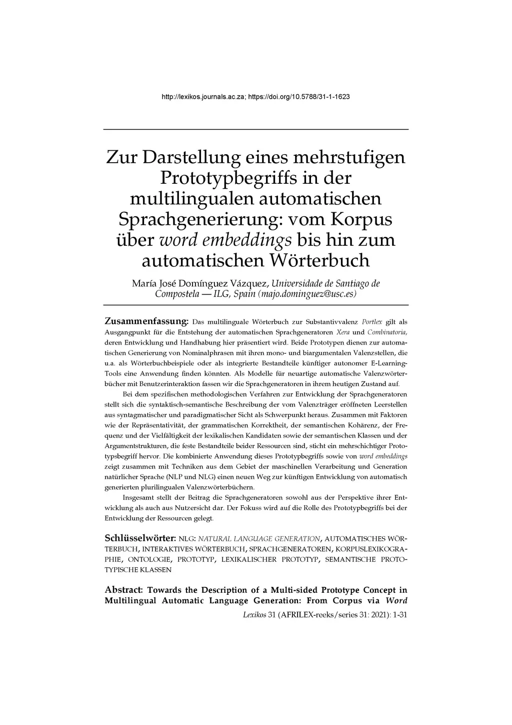 multilingualen automatischen Sprachgenerierung: vom Korpus über word