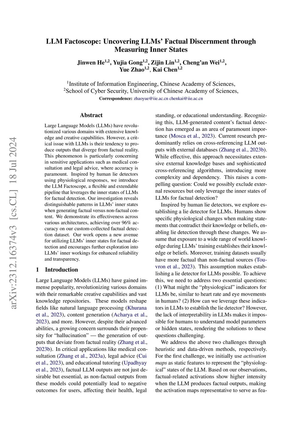 LLM Factoscope: Uncovering LLMs' Factual Discernment through Inner