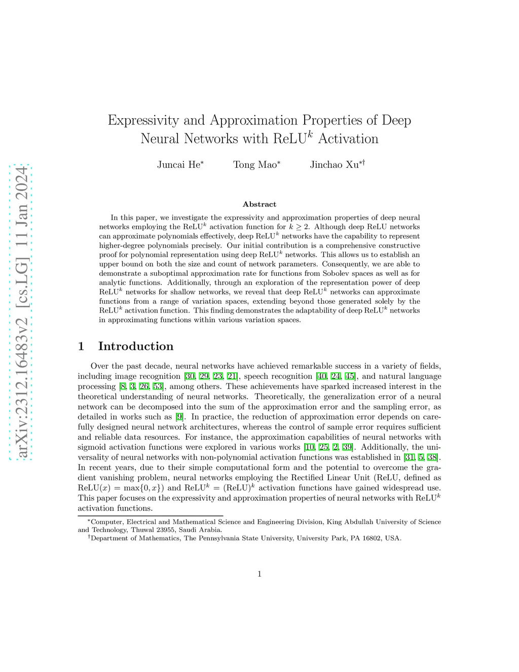 In this paper, we investigate the expressivity and approximation properties of deep neural networks employing the ReLU activation function for . Although deep ReLU networks can approximate polynomials effectively, deep ReLU networks have the capability to represent higher-degree polynomials precisely. Our initial contribution is a comprehensive, constructive proof for polynomial representation using deep ReLU networks. This allows us to establish an upper bound on both the size and count of network parameters. Consequently, we are able to demonstrate a suboptimal approximation rate for functions from Sobolev spaces as well as for analytic functions. Additionally, through an exploration of the representation power of deep ReLU networks for shallow networks, we reveal that deep ReLU networks can approximate functions from a range of variation spaces, extending beyond those generated solely by the ReLU activation function. This finding demonstrates the adaptability of deep ReLU networks in approximating functions within various variation spaces.