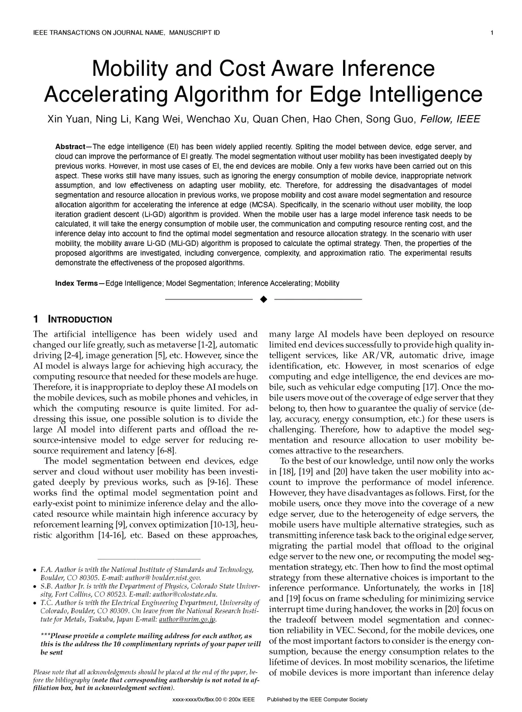 Mobility and Cost Aware Inference Accelerating Algorithm for Edge