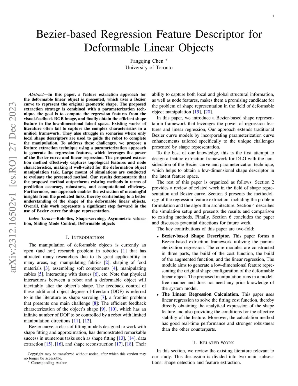 Bezier-based Regression Feature Descriptor for Deformable Linear Objects