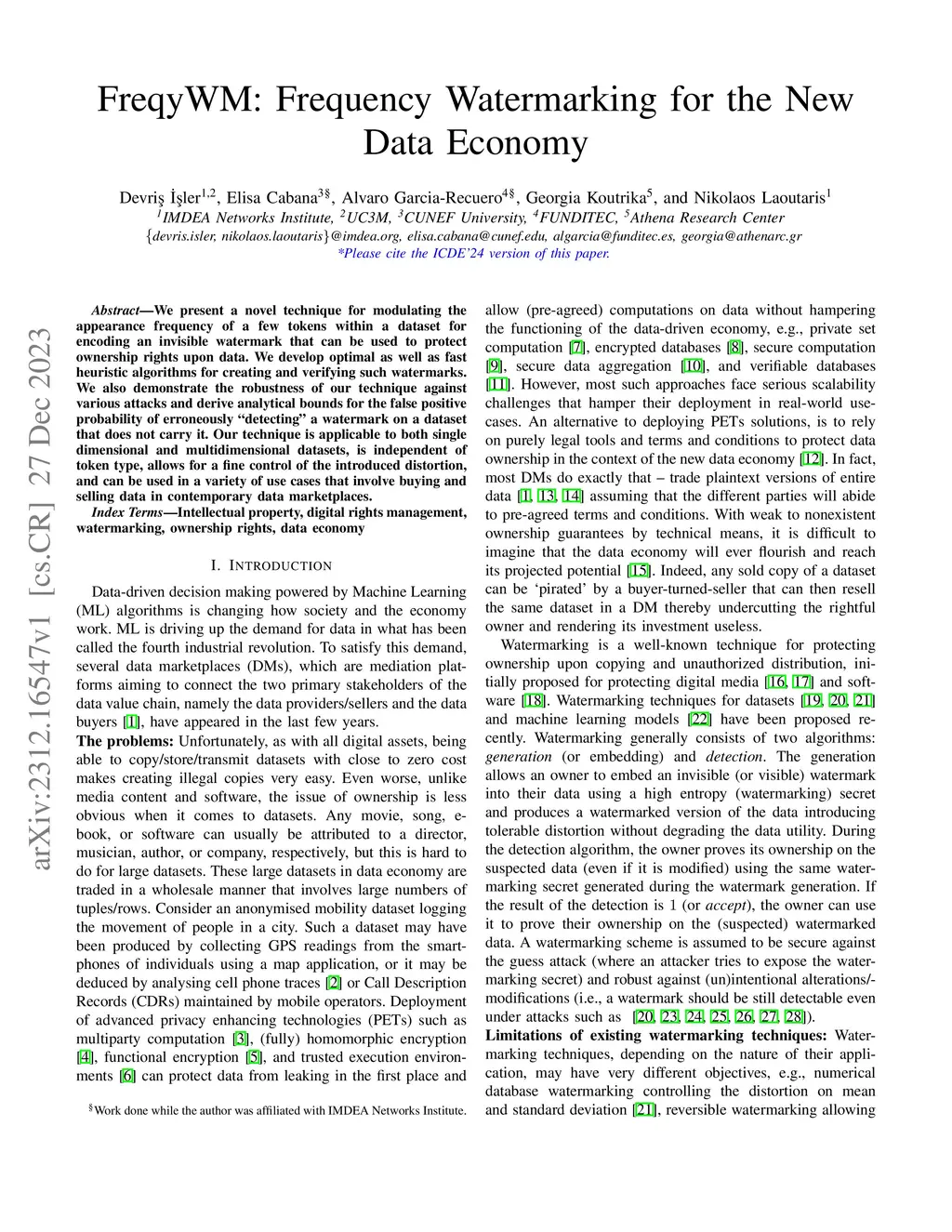 FreqyWM: Frequency Watermarking for the New Data Economy