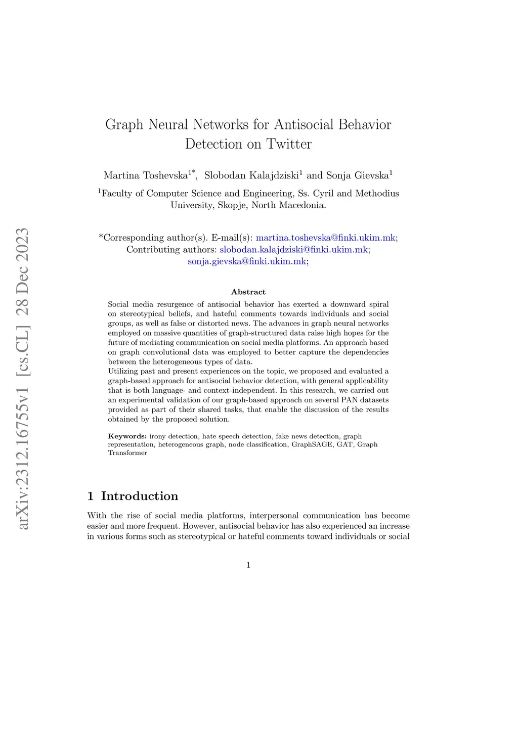 Graph Neural Networks for Antisocial Behavior Detection on Twitter