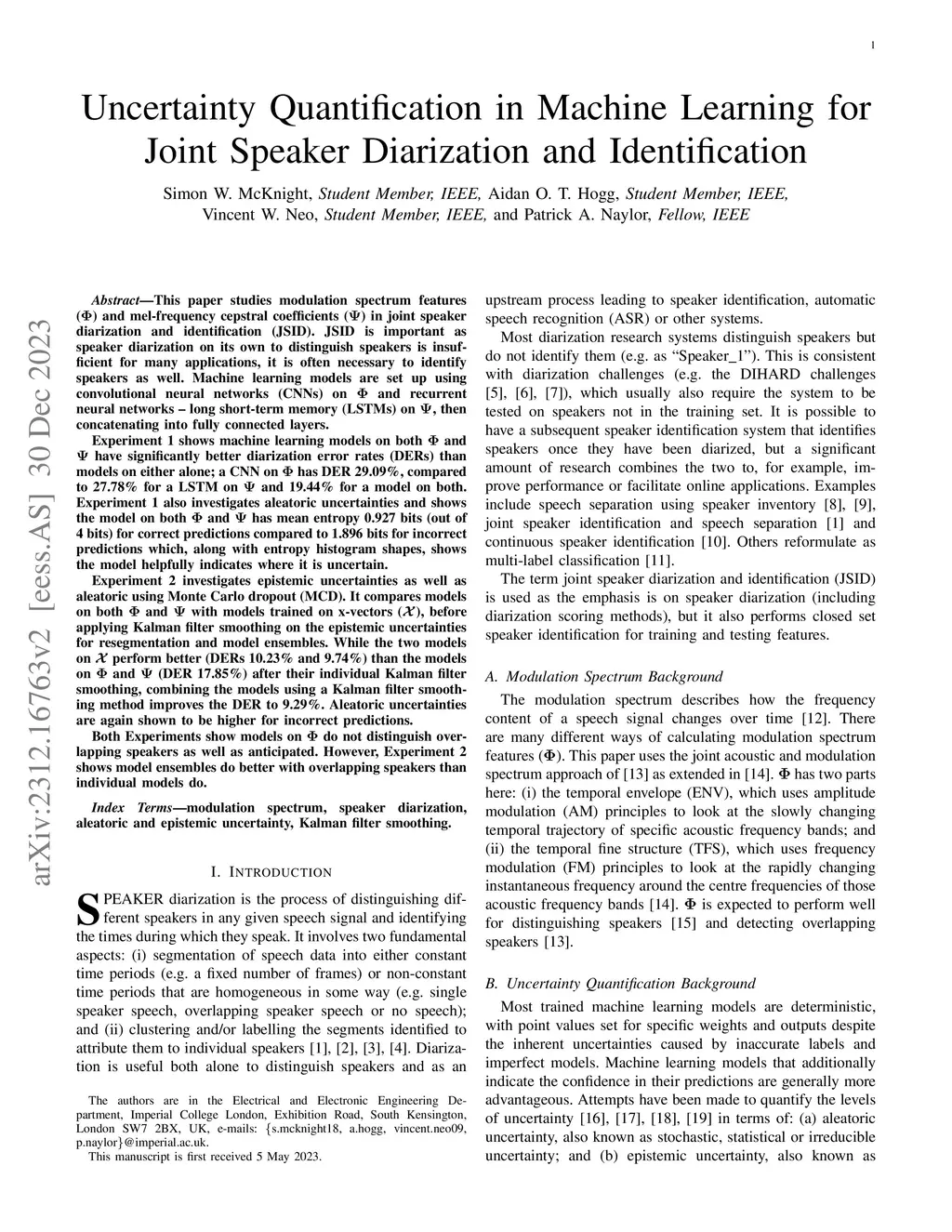 Uncertainty Quantification in Machine Learning for Joint Speaker