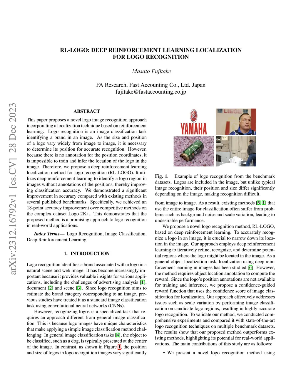 RL-LOGO: Deep Reinforcement Learning Localization for Logo Recognition