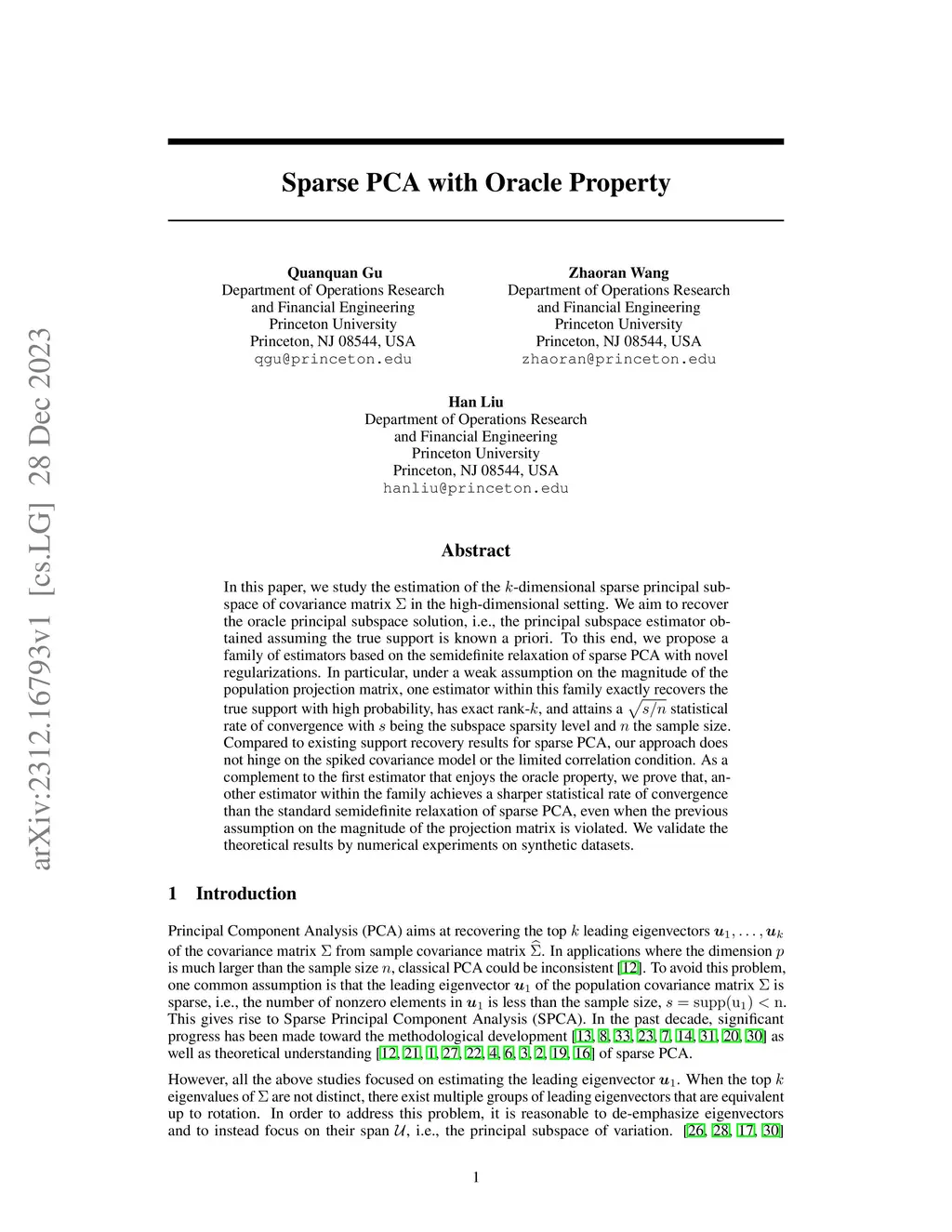In this paper, we study the estimation of the -dimensional sparse principal subspace of covariance matrix in the high-dimensional setting. We aim to recover the oracle principal subspace solution, i.e., the principal subspace estimator obtained assuming the true support is known a priori. To this end, we propose a family of estimators based on the semidefinite relaxation of sparse PCA with novel regularizations. In particular, under a weak assumption on the magnitude of the population projection matrix, one estimator within this family exactly recovers the true support with high probability, has exact rank-, and attains a statistical rate of convergence with being the subspace sparsity level and the sample size. Compared to existing support recovery results for sparse PCA, our approach does not hinge on the spiked covariance model or the limited correlation condition. As a complement to the first estimator that enjoys the oracle property, we prove that, another estimator within the family achieves a sharper statistical rate of convergence than the standard semidefinite relaxation of sparse PCA, even when the previous assumption on the magnitude of the projection matrix is violated. We validate the theoretical results by numerical experiments on synthetic datasets.