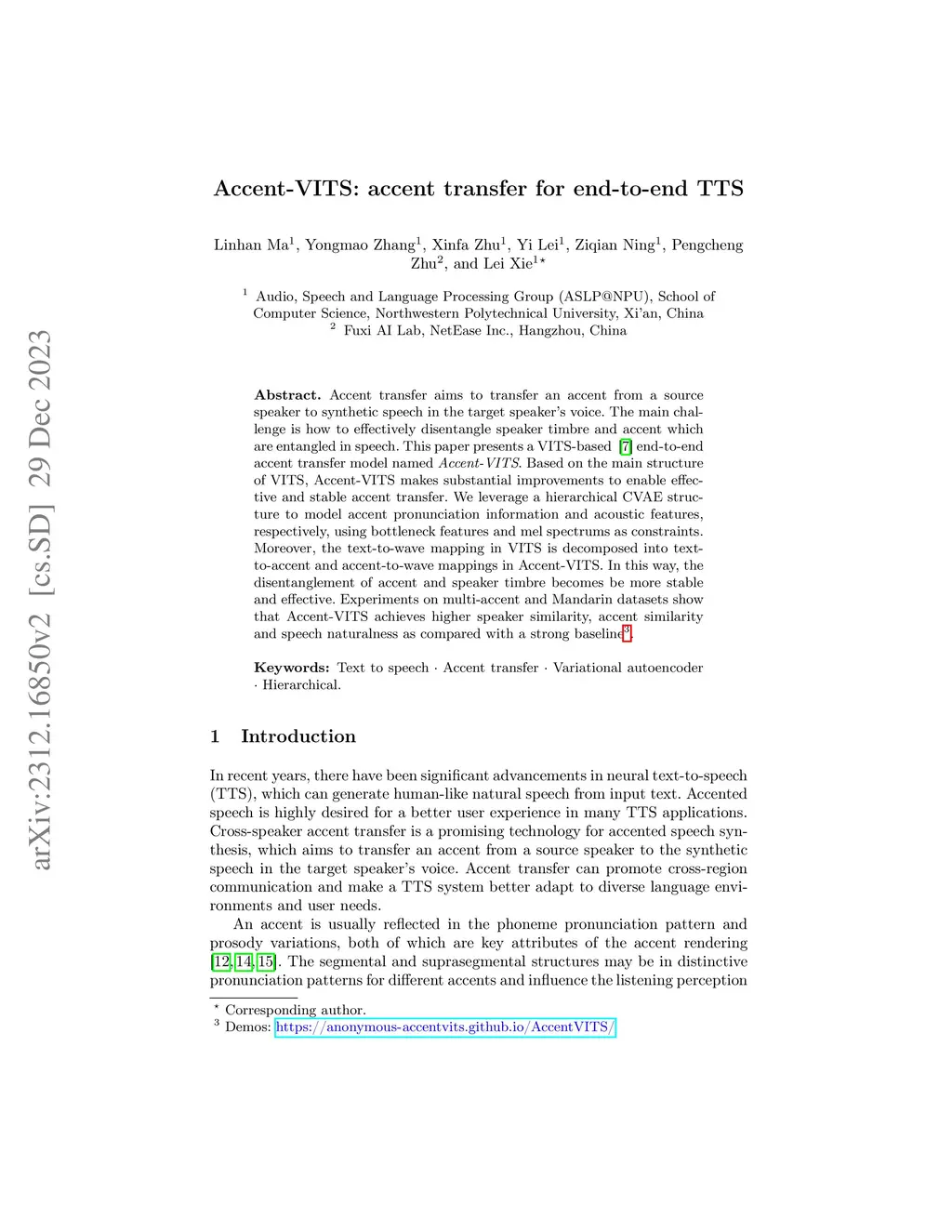 Accent transfer aims to transfer an accent from a source speaker to synthetic speech in the target speaker's voice. The main challenge is how to effectively disentangle speaker timbre and accent which are entangled in speech. This paper presents a VITS-based end-to-end accent transfer model named Accent-VITS.Based on the main structure of VITS, Accent-VITS makes substantial improvements to enable effective and stable accent transfer.We leverage a hierarchical CVAE structure to model accent pronunciation information and acoustic features, respectively, using bottleneck features and mel spectrums as constraints.Moreover, the text-to-wave mapping in VITS is decomposed into text-to-accent and accent-to-wave mappings in Accent-VITS. In this way, the disentanglement of accent and speaker timbre becomes be more stable and effective.Experiments on multi-accent and Mandarin datasets show that Accent-VITS achieves higher speaker similarity, accent similarity and speech naturalness as compared with a strong baseline.