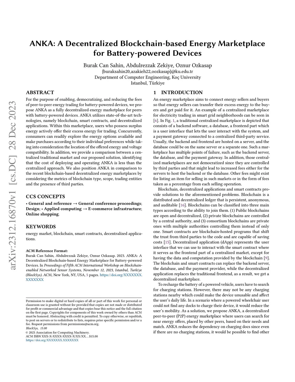 ANKA: A Decentralized Blockchain-based Energy Marketplace for
