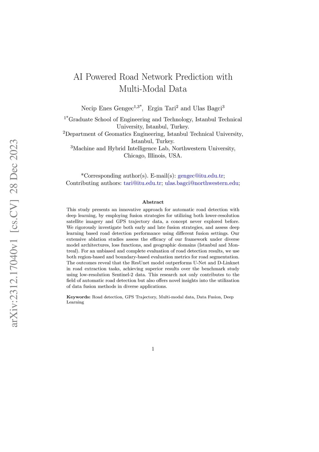 AI Powered Road Network Prediction with Multi-Modal Data