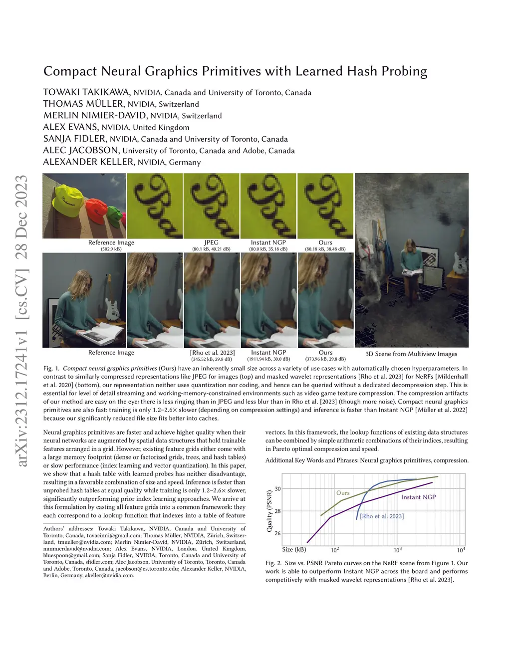 Compact Neural Graphics Primitives with Learned Hash Probing