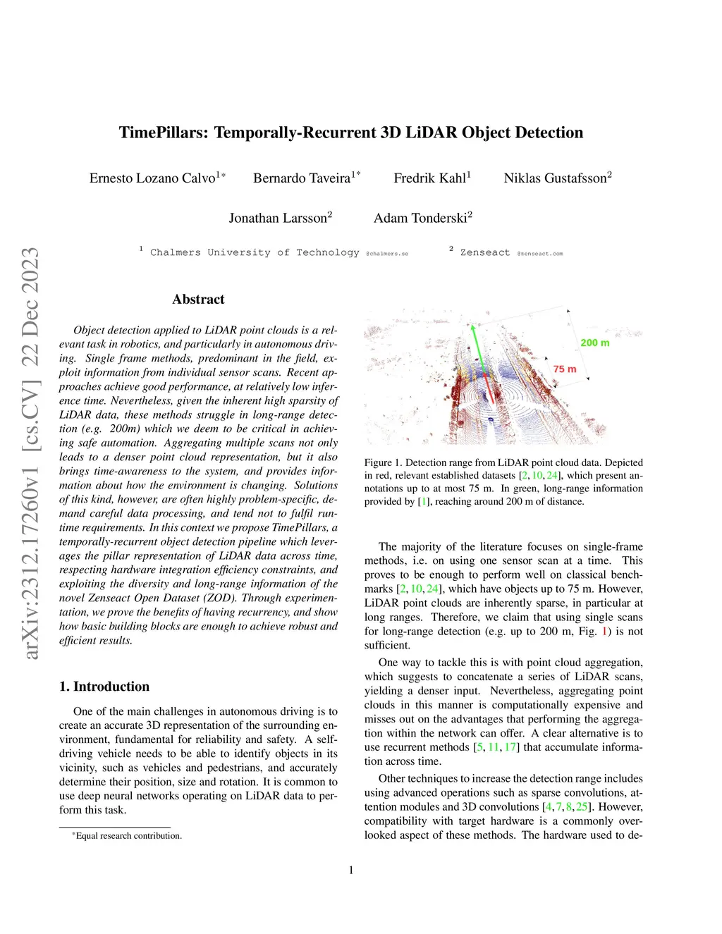 Object detection applied to LiDAR point clouds is a relevant task in robotics, and particularly in autonomous driving. Single frame methods, predominant in the field, exploit information from individual sensor scans. Recent approaches achieve good performance, at relatively low inference time. Nevertheless, given the inherent high sparsity of LiDAR data, these methods struggle in long-range detection (e.g. 200m) which we deem to be critical in achieving safe automation. Aggregating multiple scans not only leads to a denser point cloud representation, but it also brings time-awareness to the system, and provides information about how the environment is changing. Solutions of this kind, however, are often highly problem-specific, demand careful data processing, and tend not to fulfil runtime requirements. In this context we propose TimePillars, a temporally-recurrent object detection pipeline which leverages the pillar representation of LiDAR data across time, respecting hardware integration efficiency constraints, and exploiting the diversity and long-range information of the novel Zenseact Open Dataset (ZOD). Through experimentation, we prove the benefits of having recurrency, and show how basic building blocks are enough to achieve robust and efficient results.