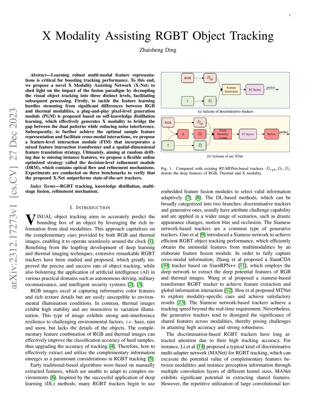 Developing robust multi-modal feature representations is crucial for enhancing object tracking performance. In pursuit of this objective, a novel X Modality Assisting Network (X-Net) is introduced, which explores the impact of the fusion paradigm by decoupling visual object tracking into three distinct levels, thereby facilitating subsequent processing. Initially, to overcome the challenges associated with feature learning due to significant discrepancies between RGB and thermal modalities, a plug-and-play pixel-level generation module (PGM) based on knowledge distillation learning is proposed. This module effectively generates the X modality, bridging the gap between the two patterns while minimizing noise interference. Subsequently, to optimize sample feature representation and promote cross-modal interactions, a feature-level interaction module (FIM) is introduced, integrating a mixed feature interaction transformer and a spatial dimensional feature translation strategy. Finally, to address random drifting caused by missing instance features, a flexible online optimization strategy called the decision-level refinement module (DRM) is proposed, which incorporates optical flow and refinement mechanisms. The efficacy of X-Net is validated through experiments on three benchmarks, demonstrating its superiority over state-of-the-art trackers. Notably, X-Net achieves performance gains of 0.47%/1.2% in the average of precise rate and success rate, respectively. Additionally, the research content, data, and code are pledged to be made publicly accessible atthis https URL.