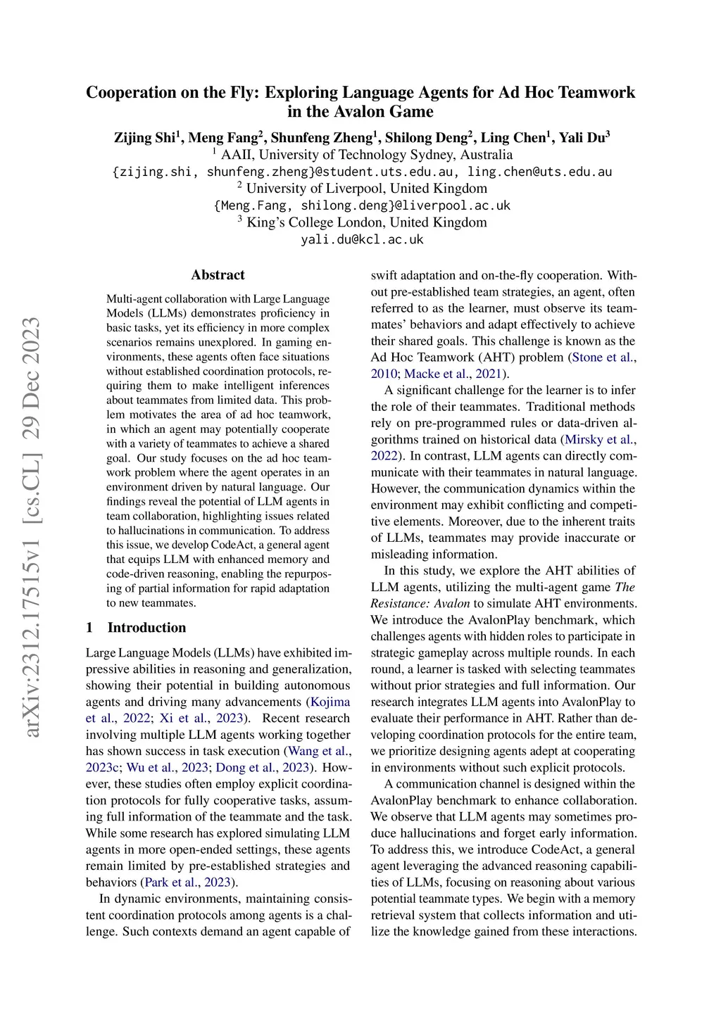 Multi-agent collaboration with Large Language Models (LLMs) demonstrates proficiency in basic tasks, yet its efficiency in more complex scenarios remains unexplored. In gaming environments, these agents often face situations without established coordination protocols, requiring them to make intelligent inferences about teammates from limited data. This problem motivates the area of ad hoc teamwork, in which an agent may potentially cooperate with a variety of teammates to achieve a shared goal. Our study focuses on the ad hoc teamwork problem where the agent operates in an environment driven by natural language. Our findings reveal the potential of LLM agents in team collaboration, highlighting issues related to hallucinations in communication. To address this issue, we develop CodeAct, a general agent that equips LLM with enhanced memory and code-driven reasoning, enabling the repurposing of partial information for rapid adaptation to new teammates.
