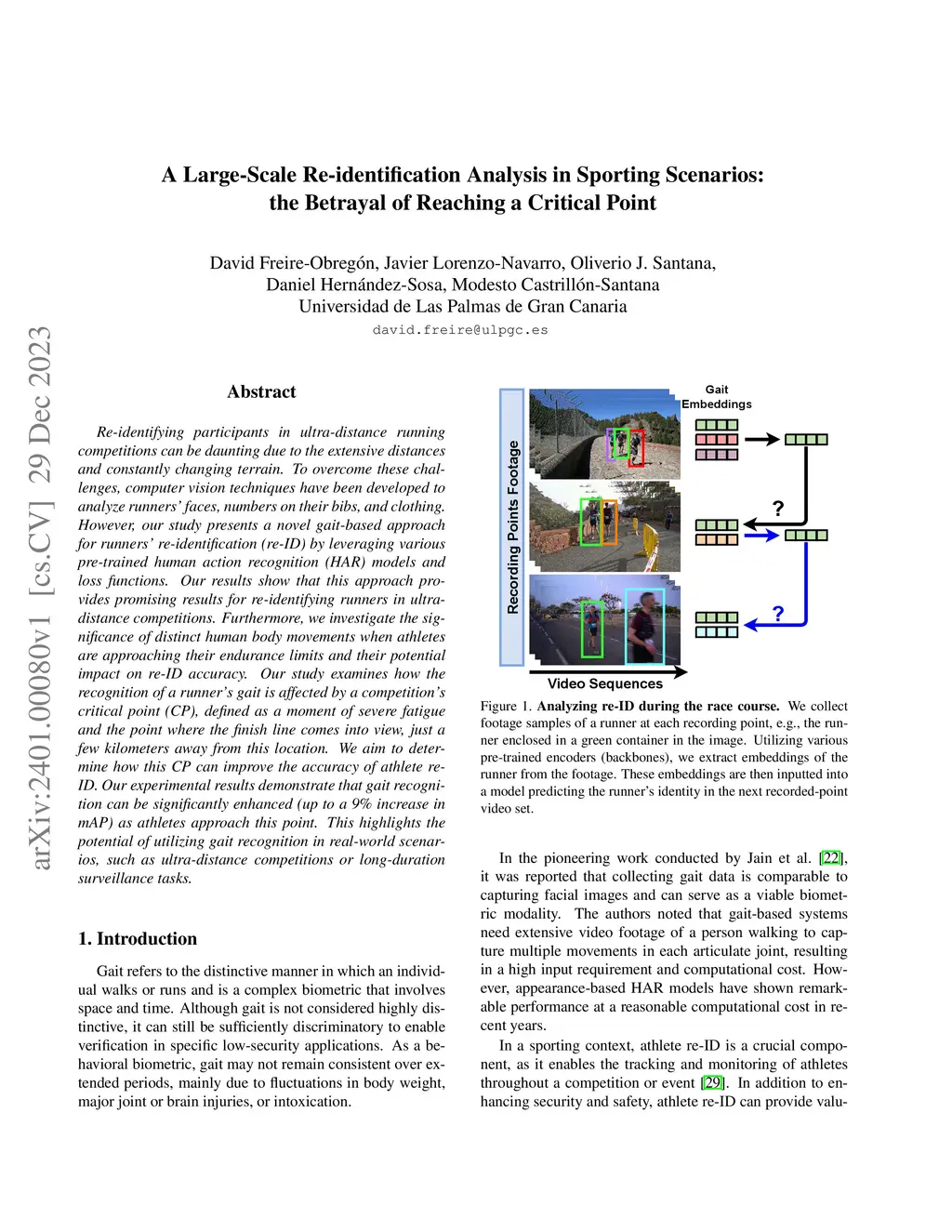 Re-identifying participants in ultra-distance running competitions can be daunting due to the extensive distances and constantly changing terrain. To overcome these challenges, computer vision techniques have been developed to analyze runners' faces, numbers on their bibs, and clothing. However, our study presents a novel gait-based approach for runners' re-identification (re-ID) by leveraging various pre-trained human action recognition (HAR) models and loss functions. Our results show that this approach provides promising results for re-identifying runners in ultra-distance competitions. Furthermore, we investigate the significance of distinct human body movements when athletes are approaching their endurance limits and their potential impact on re-ID accuracy. Our study examines how the recognition of a runner's gait is affected by a competition's critical point (CP), defined as a moment of severe fatigue and the point where the finish line comes into view, just a few kilometers away from this location. We aim to determine how this CP can improve the accuracy of athlete re-ID. Our experimental results demonstrate that gait recognition can be significantly enhanced (up to a 9% increase in mAP) as athletes approach this point. This highlights the potential of utilizing gait recognition in real-world scenarios, such as ultra-distance competitions or long-duration surveillance tasks.