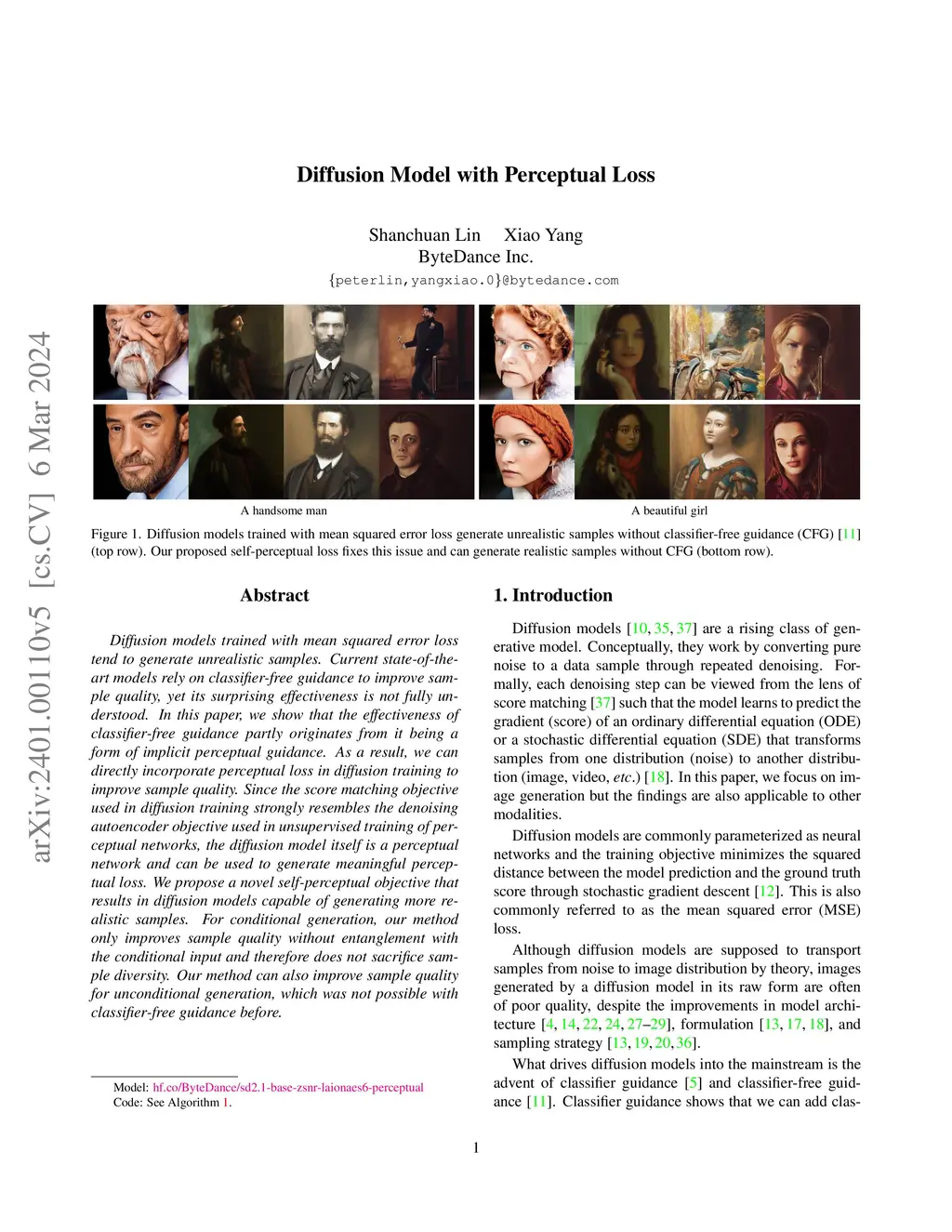 Diffusion models trained with mean squared error loss tend to generate unrealistic samples. Current state-of-the-art models rely on classifier-free guidance to improve sample quality, yet its surprising effectiveness is not fully understood. In this paper, we show that the effectiveness of classifier-free guidance partly originates from it being a form of implicit perceptual guidance. As a result, we can directly incorporate perceptual loss in diffusion training to improve sample quality. Since the score matching objective used in diffusion training strongly resembles the denoising autoencoder objective used in unsupervised training of perceptual networks, the diffusion model itself is a perceptual network and can be used to generate meaningful perceptual loss. We propose a novel self-perceptual objective that results in diffusion models capable of generating more realistic samples. For conditional generation, our method only improves sample quality without entanglement with the conditional input and therefore does not sacrifice sample diversity. Our method can also improve sample quality for unconditional generation, which was not possible with classifier-free guidance before.