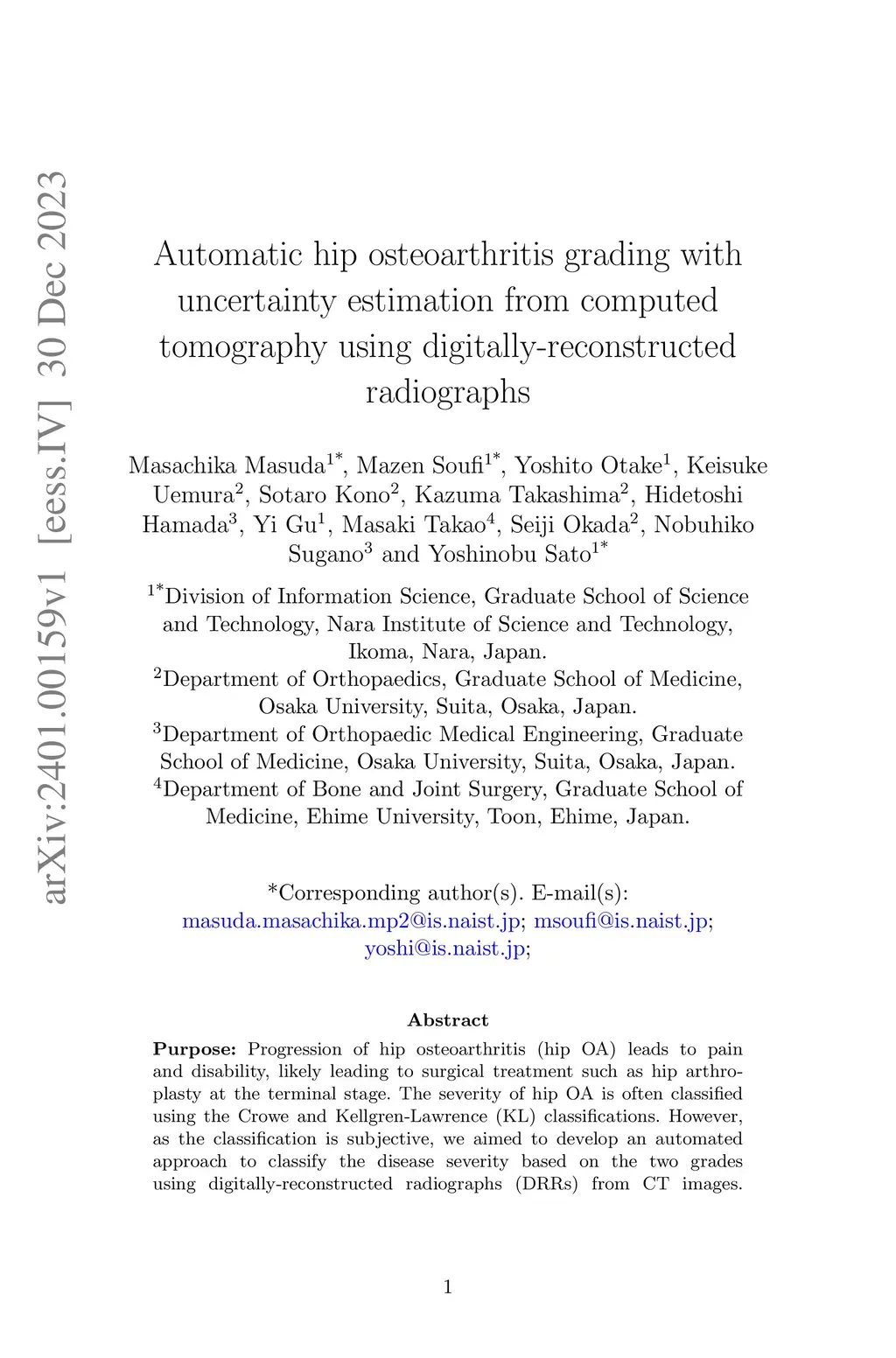 Automatic hip osteoarthritis grading with uncertainty estimation from