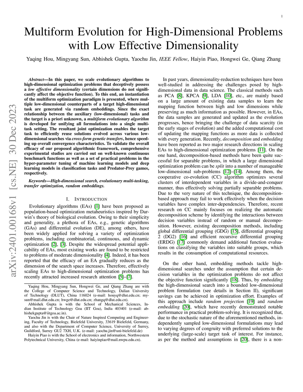 Multiform Evolution for High-Dimensional Problems with Low Effective