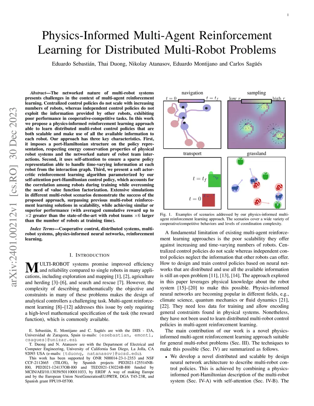 Physics-Informed Multi-Agent Reinforcement Learning for Distributed Multi-Robot Problems