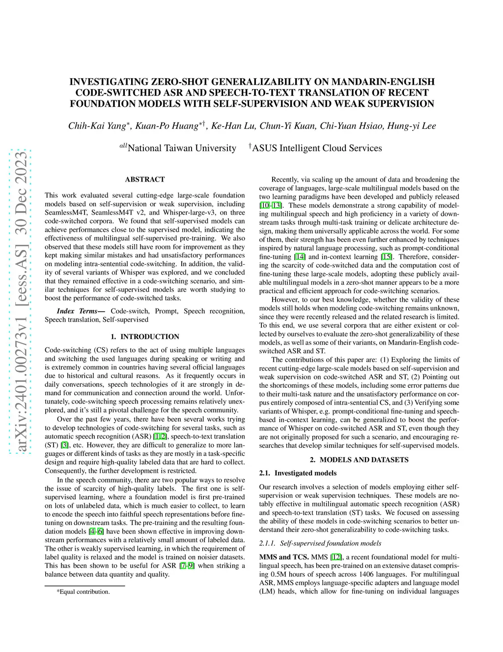 Investigating Zero-Shot Generalizability on Mandarin-English