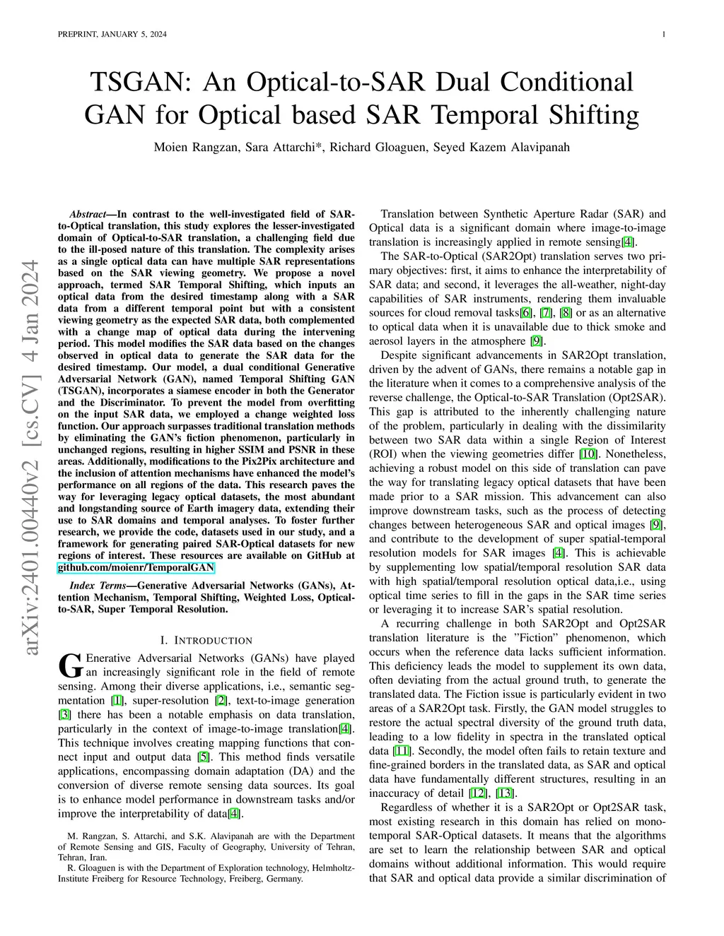 TSGAN: An Optical-to-SAR Dual Conditional GAN for Optical based SAR