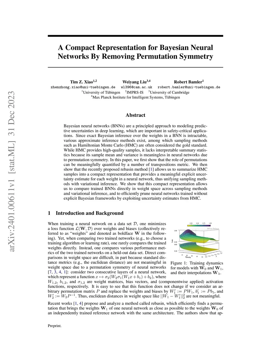 Bayesian neural networks (BNNs) are a principled approach to modeling predictive uncertainties in deep learning, which are important in safety-critical applications. Since exact Bayesian inference over the weights in a BNN is intractable, various approximate inference methods exist, among which sampling methods such as Hamiltonian Monte Carlo (HMC) are often considered the gold standard. While HMC provides high-quality samples, it lacks interpretable summary statistics because its sample mean and variance is meaningless in neural networks due to permutation symmetry. In this paper, we first show that the role of permutations can be meaningfully quantified by a number of transpositions metric. We then show that the recently proposed rebasin method allows us to summarize HMC samples into a compact representation that provides a meaningful explicit uncertainty estimate for each weight in a neural network, thus unifying sampling methods with variational inference. We show that this compact representation allows us to compare trained BNNs directly in weight space across sampling methods and variational inference, and to efficiently prune neural networks trained without explicit Bayesian frameworks by exploiting uncertainty estimates from HMC.