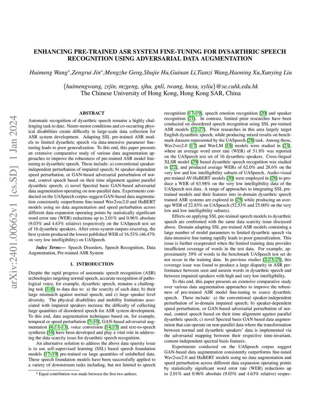 Automatic recognition of dysarthric speech remains a highly challenging task to date. Neuro-motor conditions and co-occurring physical disabilities create difficulty in large-scale data collection for ASR system development. Adapting SSL pre-trained ASR models to limited dysarthric speech via data-intensive parameter fine-tuning leads to poor generalization. To this end, this paper presents an extensive comparative study of various data augmentation approaches to improve the robustness of pre-trained ASR model fine-tuning to dysarthric speech. These include: a) conventional speaker-independent perturbation of impaired speech; b) speaker-dependent speed perturbation, or GAN-based adversarial perturbation of normal, control speech based on their time alignment against parallel dysarthric speech; c) novel Spectral basis GAN-based adversarial data augmentation operating on non-parallel data. Experiments conducted on the UASpeech corpus suggest GAN-based data augmentation consistently outperforms fine-tuned Wav2vec2.0 and HuBERT models using no data augmentation and speed perturbation across different data expansion operating points by statistically significant word error rate (WER) reductions up to 2.01% and 0.96% absolute (9.03% and 4.63% relative) respectively on the UASpeech test set of 16 dysarthric speakers. After cross-system outputs rescoring, the best system produced the lowest published WER of 16.53% (46.47% on very low intelligibility) on UASpeech.