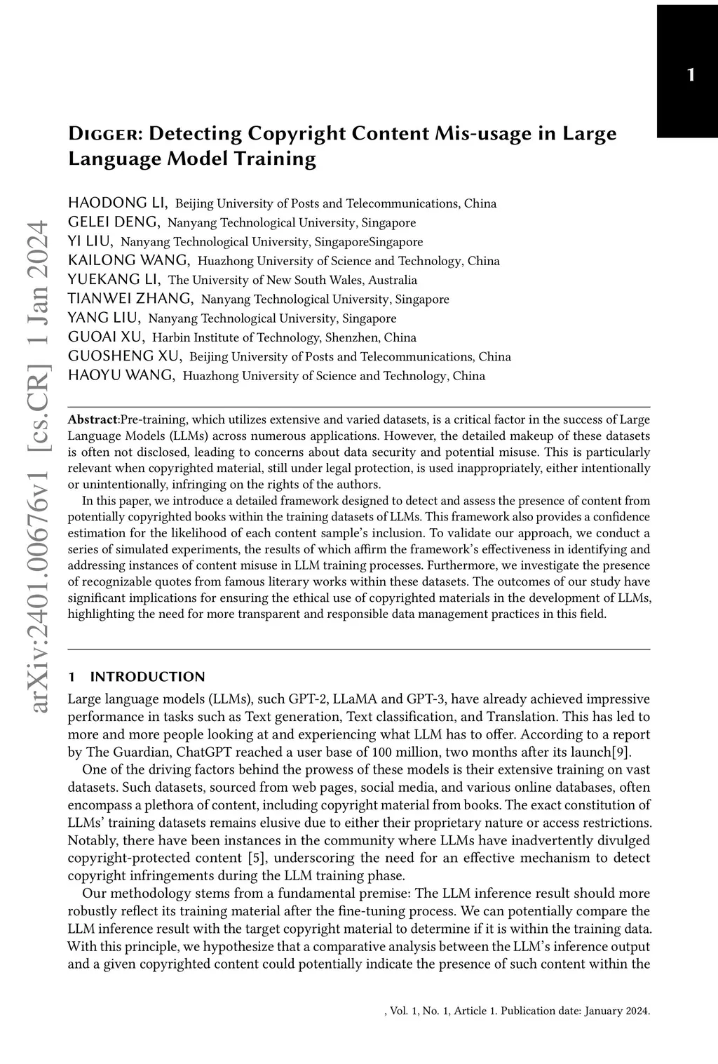 Digger: Detecting Copyright Content Mis-usage in Large Language Model