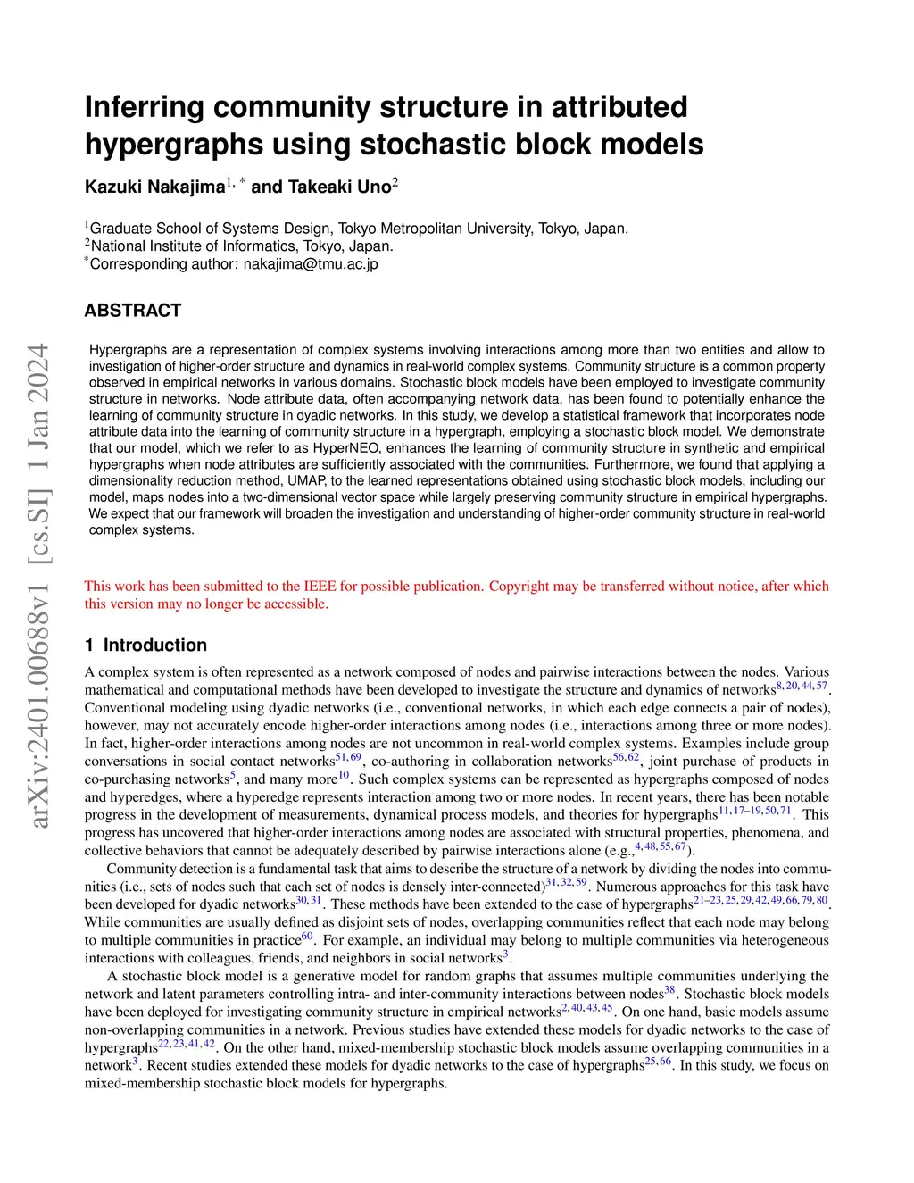 Hypergraphs represent complex systems involving interactions among more than two entities and allow the investigation of higher-order structure and dynamics in complex systems. Node attribute data, which often accompanies network data, can enhance the inference of community structure in complex systems. While mixed-membership stochastic block models have been employed to infer community structure in hypergraphs, they complicate the visualization and interpretation of inferred community structure by assuming that nodes may possess soft community memberships. In this study, we propose a framework, HyperNEO, that combines mixed-membership stochastic block models for hypergraphs with dimensionality reduction methods. Our approach generates a node layout that largely preserves the community memberships of nodes. We evaluate our framework on both synthetic and empirical hypergraphs with node attributes. We expect our framework will broaden the investigation and understanding of higher-order community structure in complex systems.