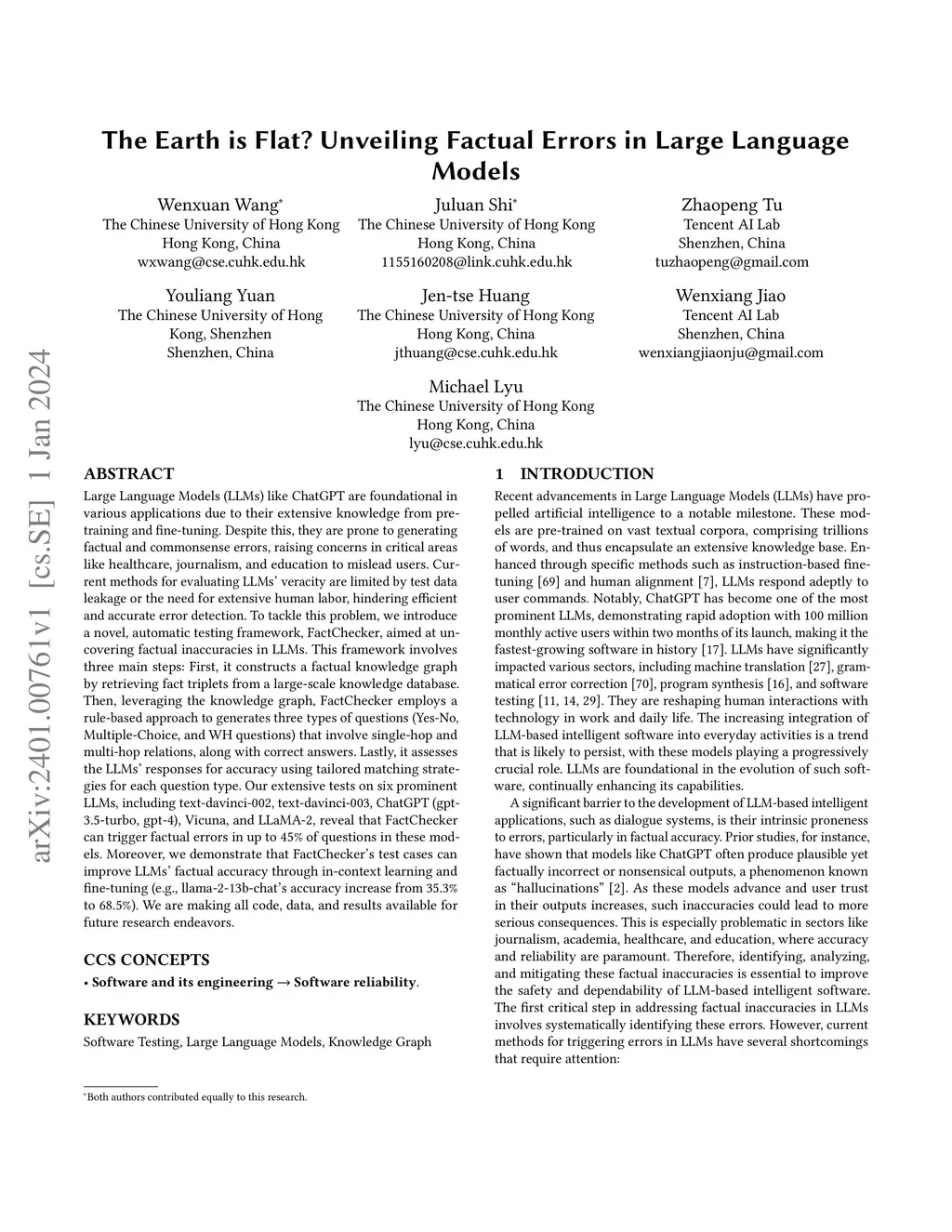 The Earth is Flat? Unveiling Factual Errors in Large Language Models