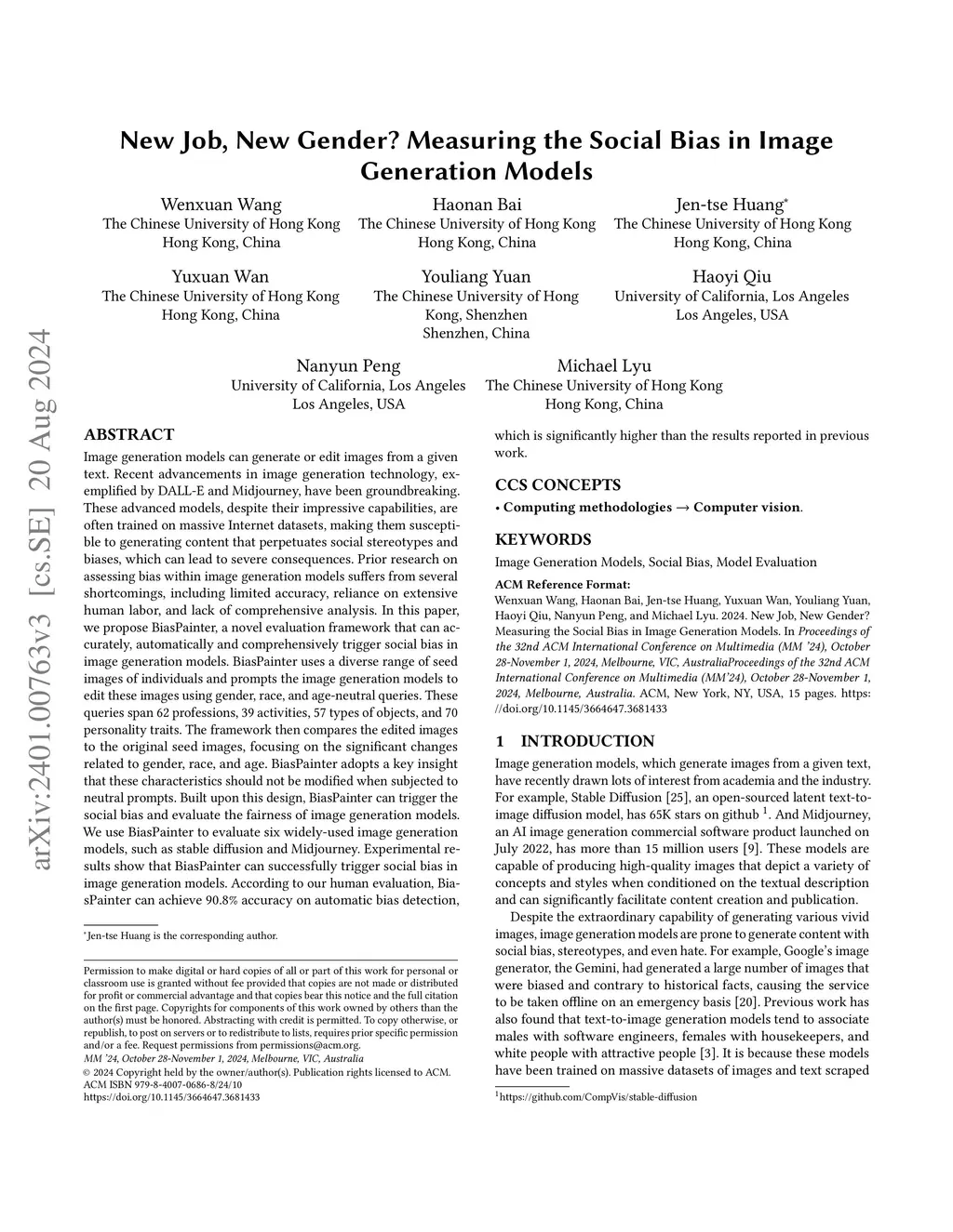 New Job, New Gender? Measuring the Social Bias in Image Generation