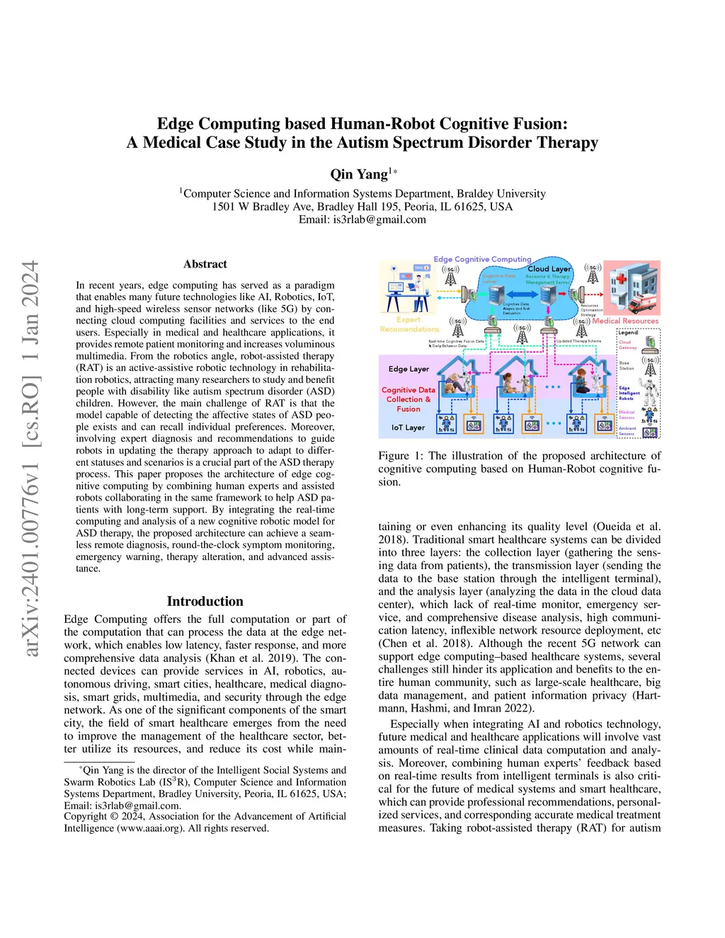 Edge Computing based Human-Robot Cognitive Fusion: A Medical Case Study in the Autism Spectrum Disorder Therapy