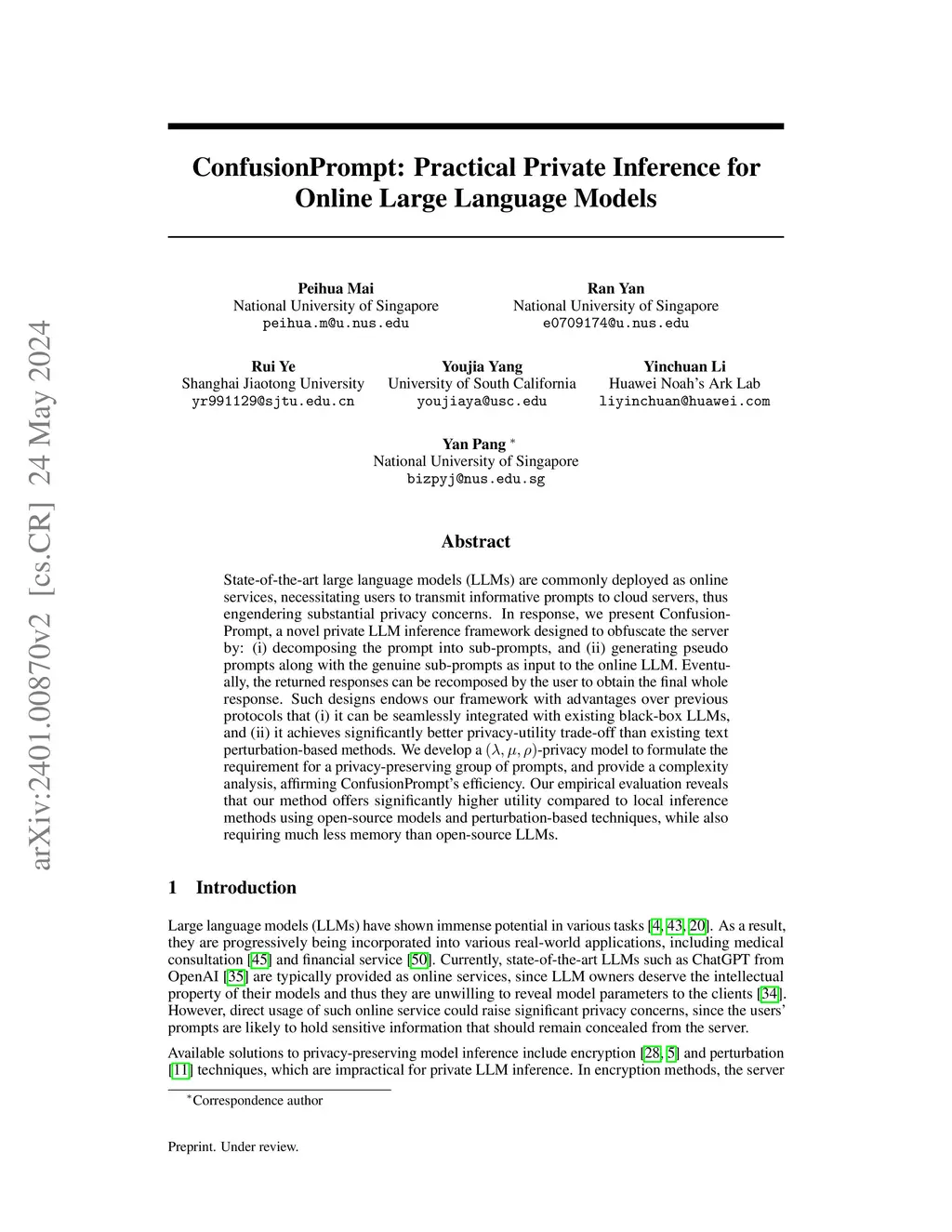 ConfusionPrompt: Practical Private Inference for Online Large Language