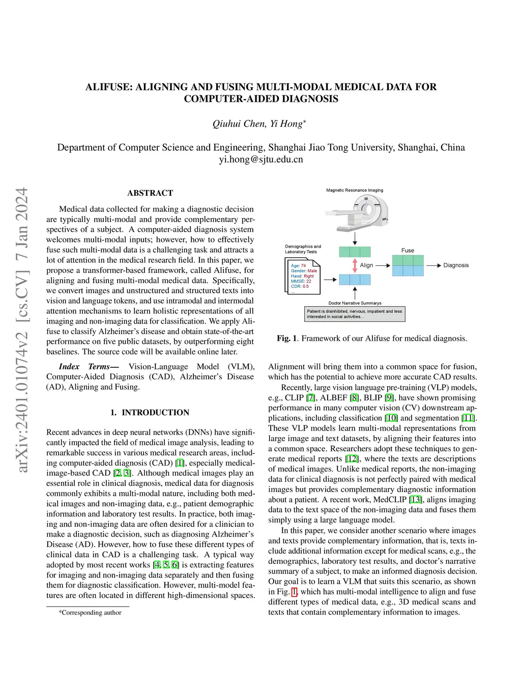 AliFuse: Aligning and Fusing Multi-modal Medical Data for Computer-Aided Diagnosis